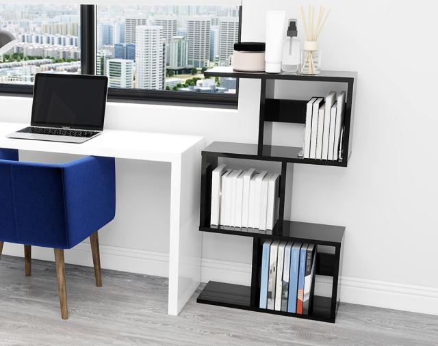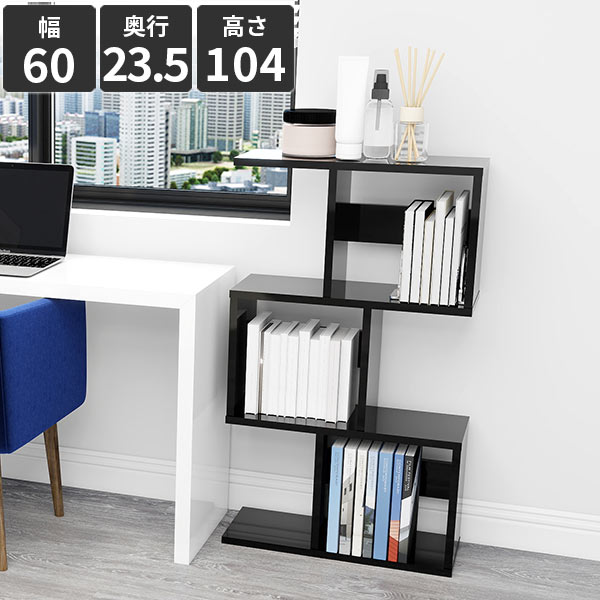 オープンシェルフ 本棚 パーテーションラック マガジンラック 鏡面 ディスプレイ棚 黒 衝立 おしゃれ ディスプレイシェルフ ブラック ジグザグラック 3段 木製 ついたて A4 飾り棚 ディスプレイラック 幅60cm 間仕切り インテリア S字ラック リビング収納 オフィス ★