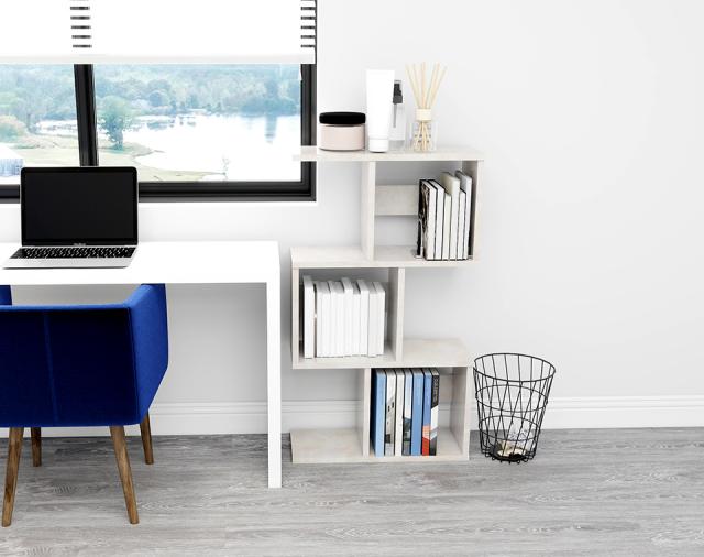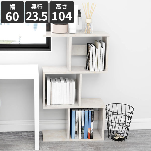 本棚 オープンラック マガジンラック ジグザグラック 大理石風 おしゃれ 3段 飾り棚 ディスプレイシェルフ 鏡面 仕切り ディスプレイ棚 間仕切り ディスプレイラック パーテーションラック マーブル S字型 書類収納 待合室 衝立 大理石柄 幅60cm 木製 オフィス収納 ★