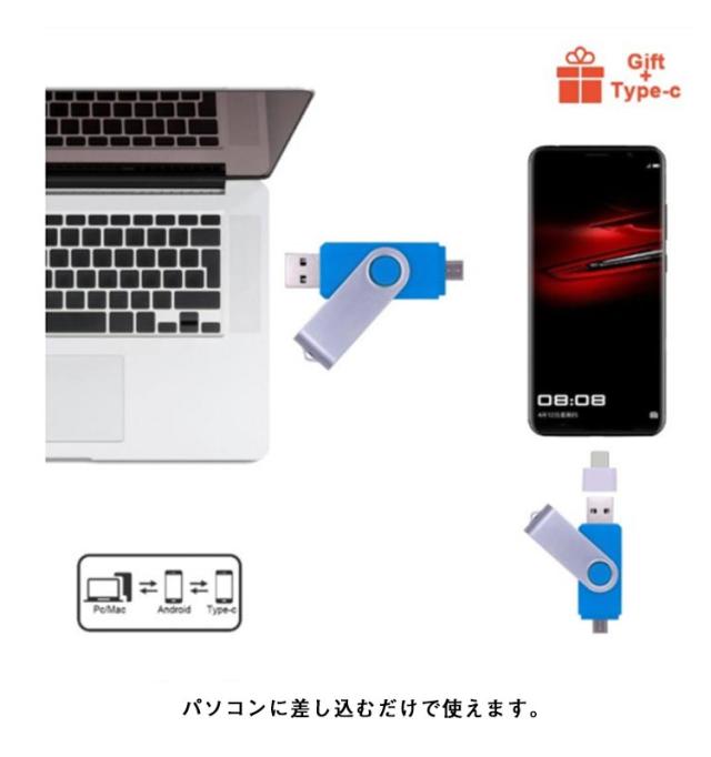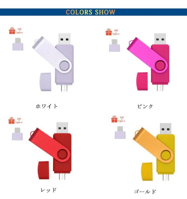 - USB メモリ 64GB は USB2.0 対応で、MicroUSB・Type-C 2in1 設計で iPhone/iPad/PC/Android/Mac に対応します!回転式のおしゃれなデザインで、...