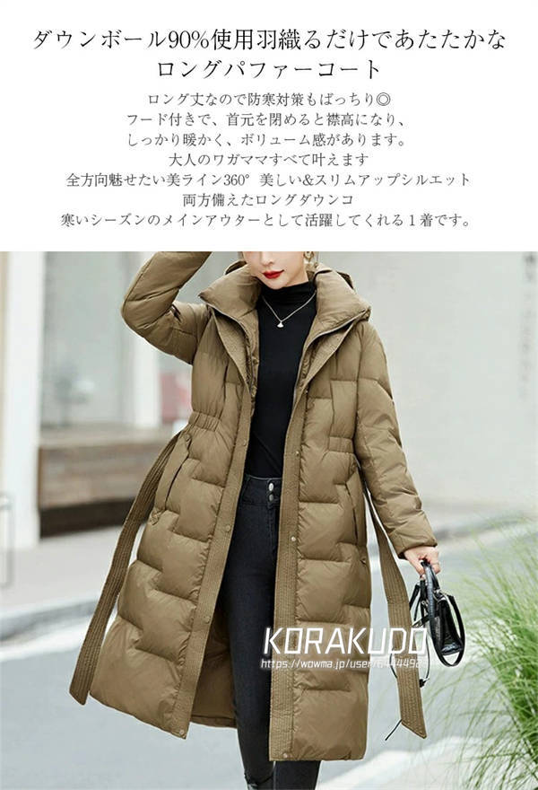ダウンコート ダウン90% レディース ロング フード付き ベンチコート ダウンジャケット ダウン コート ロングコート ロング丈コート ベンチコート レディースダウンコート 冬 アウター ギフト プレゼント 実用的