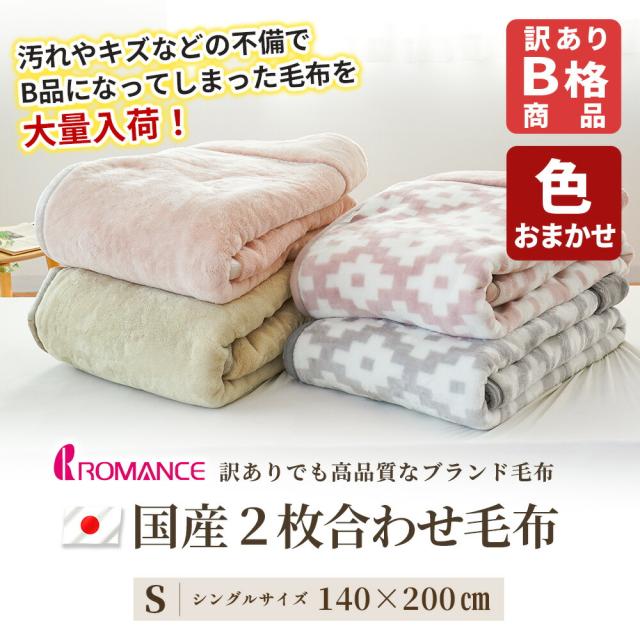 【訳あり・アウトレット】色柄おまかせ (無地含む) 国産 日本製 ロマンス 毛布 シングル 2枚合わせ 140×200 約2.2kg ふっくら ボリューム 衿付き もうふ ブランケット 暖かい あったか ふっくら 品質込み ブランド毛布 節電