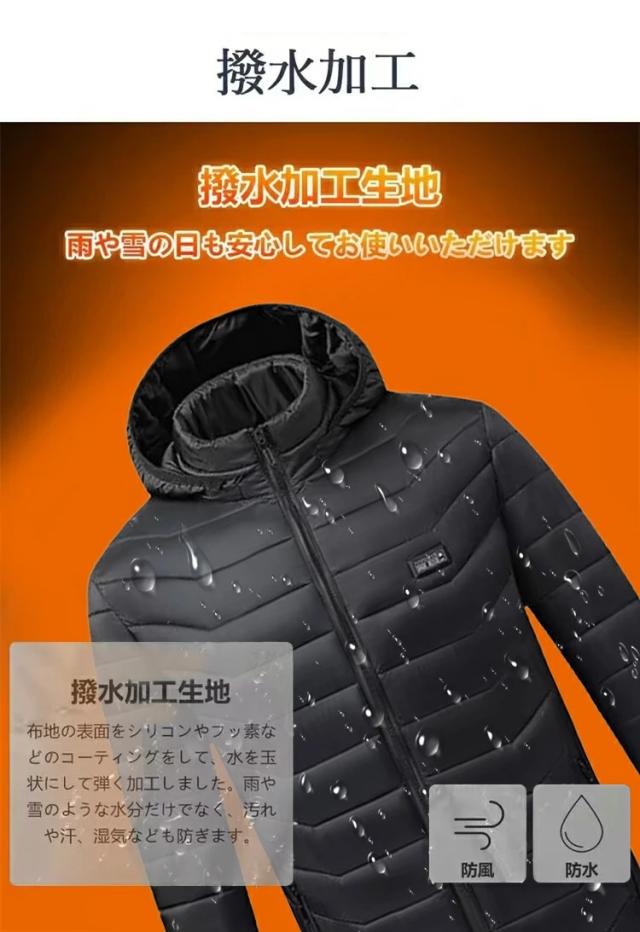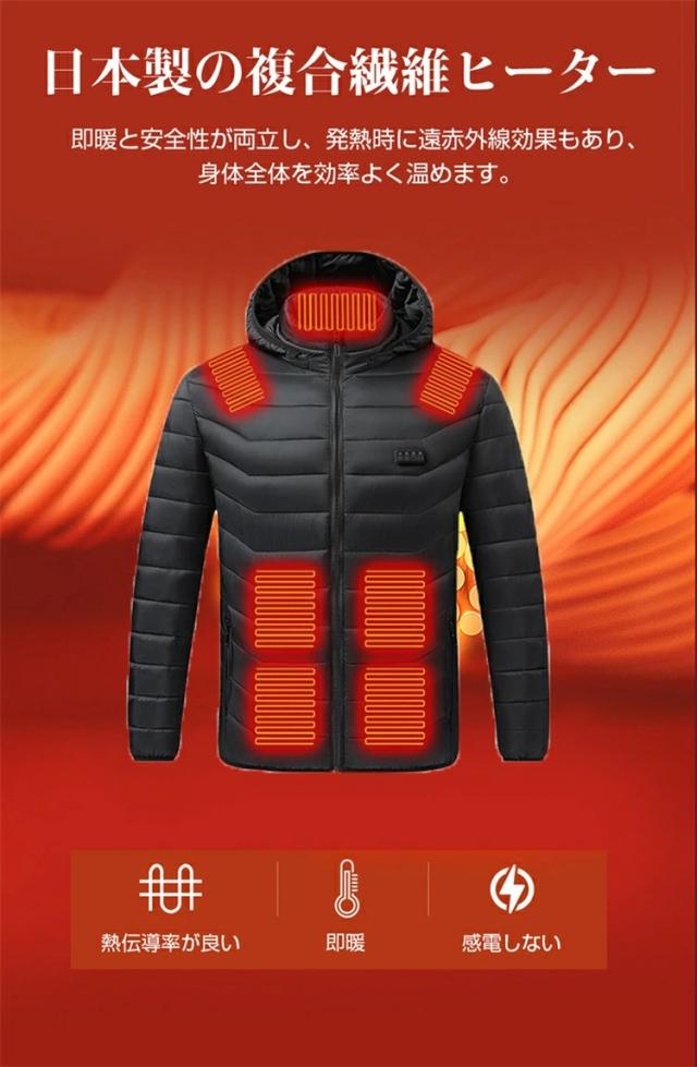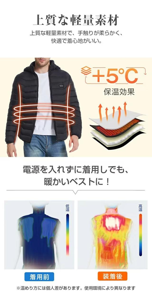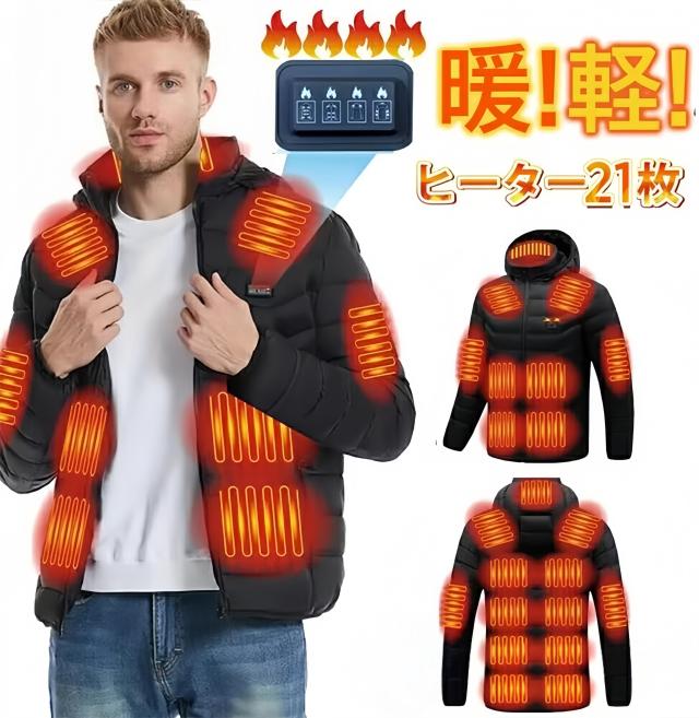 【3ヶ月保証】電熱ジャケット 電熱ウェア 長袖 21箇所発熱 4つ独立制御ボタン 3段階温度調整 日本製ヒーター内蔵 電熱ジャケット 電熱服 ヒートジャケット ジャケット フード付き 中綿コート メンズ レディース 男女兼用 軽量 釣り スキー 水洗い可着 夜釣り 屋外作業