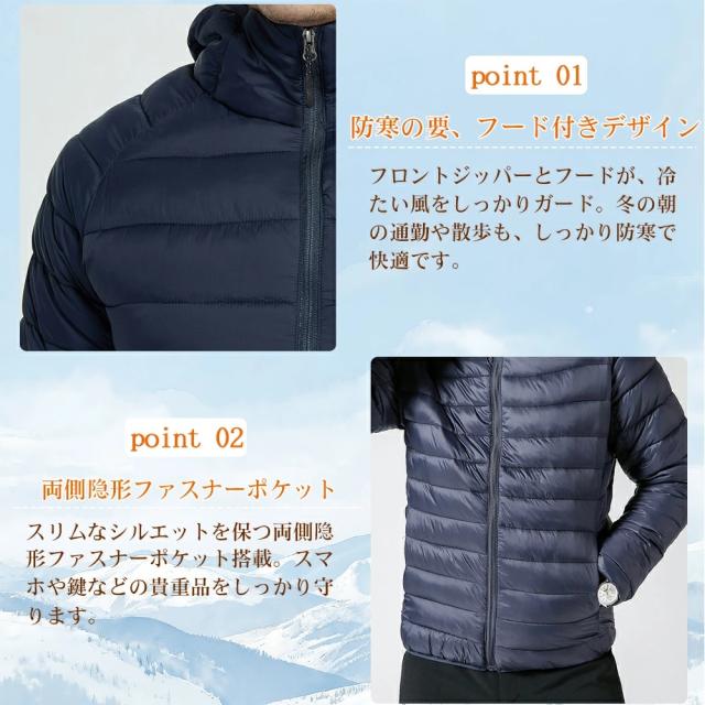 メンズ 超軽量 ダウンジャケット 防水透湿 多機能 折りたたみ 綿入りジャケット 防寒着 防風 フロントジッパー 撥水性 コンパクト 専用収納袋付き スキー カジュアル トレッキング コート アウトドアウエア 男女兼用 春秋冬 旅行 通勤 通学