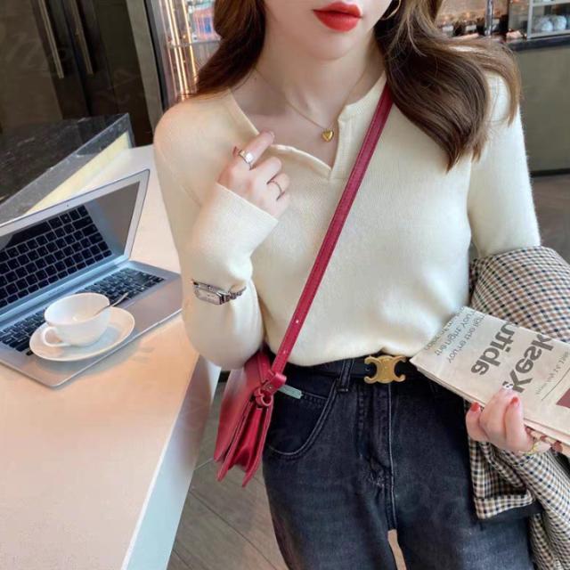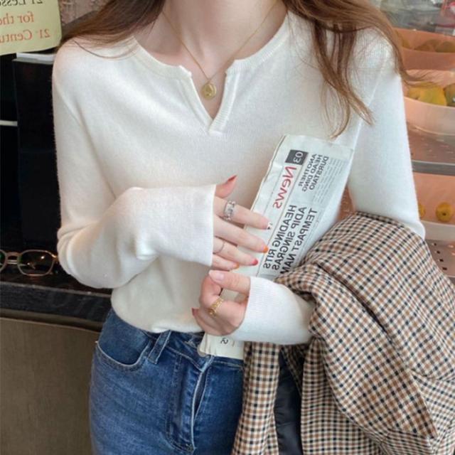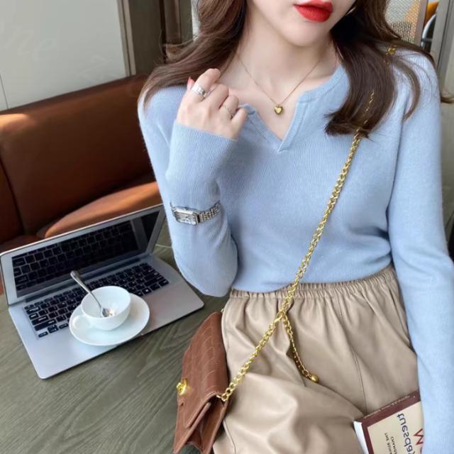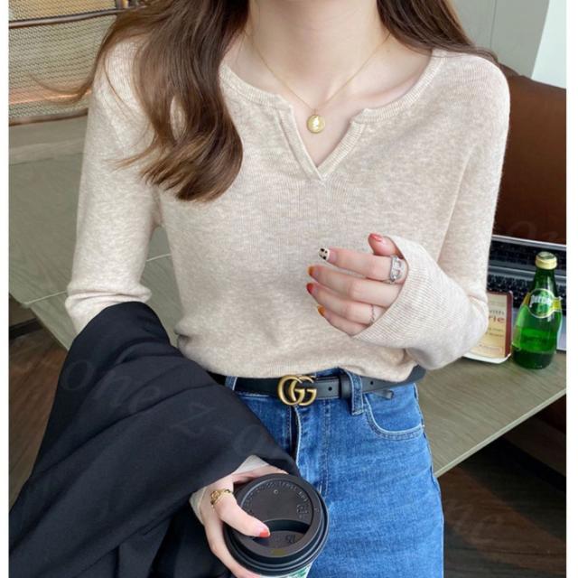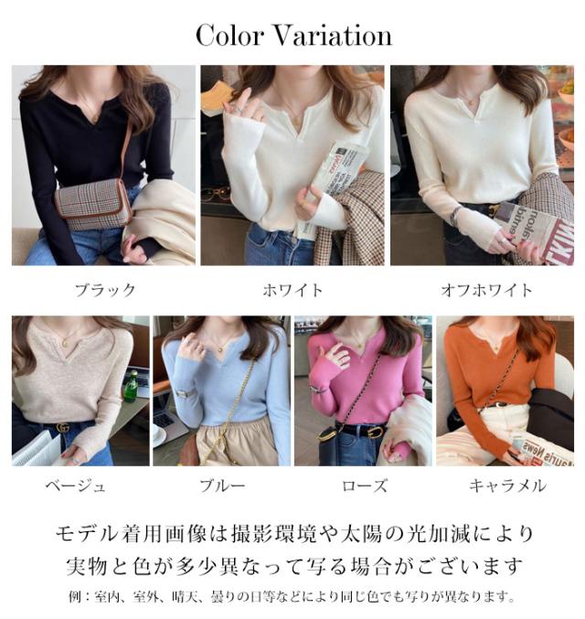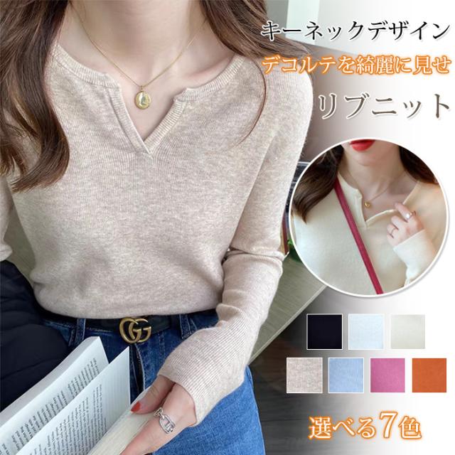 リブニット ニット キーネック レディース トップス セーター 長袖ニット vネック カジュアル オフィスカジュアル 秋新作 きれいめ ゆったりシンプル 体型カバー可愛い 無地 肌触りいい おしゃれ