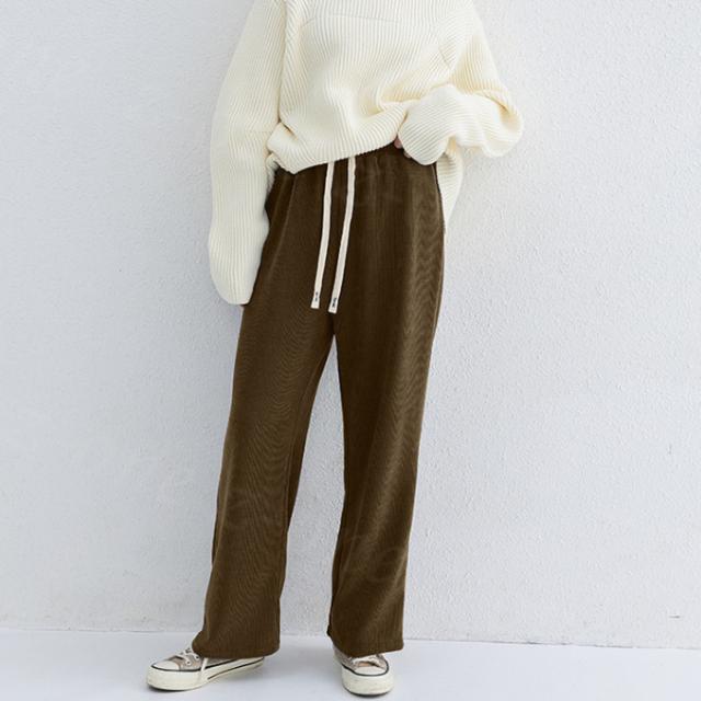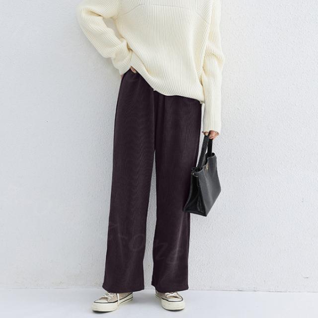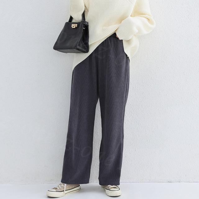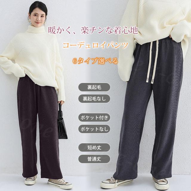 コーデュロイパンツ ワイドパンツ コーデュロイ ぬくぬくパンツ レディース 裏起毛 あったか 防寒 カジュアル ロング丈 ゆったり シンプル 秋新作 体型カバー可愛い 無地 肌触りいい ストレートストレッチ スウェットパンツ