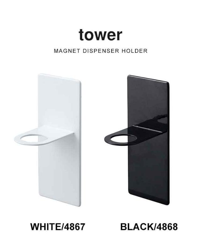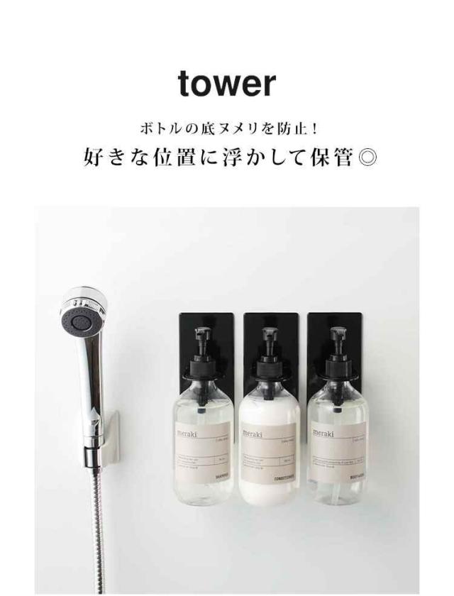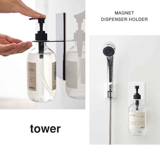 ディスペンサー ホルダー マグネット タワー tower 磁石 吊り下げ ボトルラック ボトルホルダー 山崎実業 ブラック ホワイト 浮かせる シャンプー コンディショナー ボディソープ ボトル ホルダー シンプル 空中収納 浴室 バスルーム 便利グッズ フック 壁 おしゃれ4867 4868