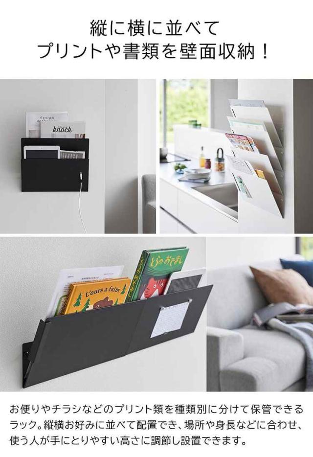 ウォール縦横連結プリント収納ラック 石こうボード壁対応 2個組 山崎実業 タワー プリントラック 収納 浮かせる tower 書類 ファイル プリント 冷蔵庫 キッチン ウォールシェルフ 石膏ボードピン ネジ 対応 1343 1344 ホワイト ブラック シンプル おしゃれ 壁掛け棚 公式