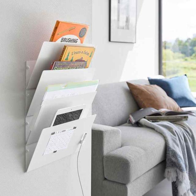 石こうボードピンで簡単取り付け。用途に合わせて縦横お好みの位置に連結させてプリント類を収納できるラックです。雑誌や絵本・プリント類・タブレット端末などの壁面収納に。書類の滑り落ちを防ぐマグネットストッパー付き。お好みの場所に設置できるので、お子様が絵本などを手にとりやすい高さに設置できて便利です。