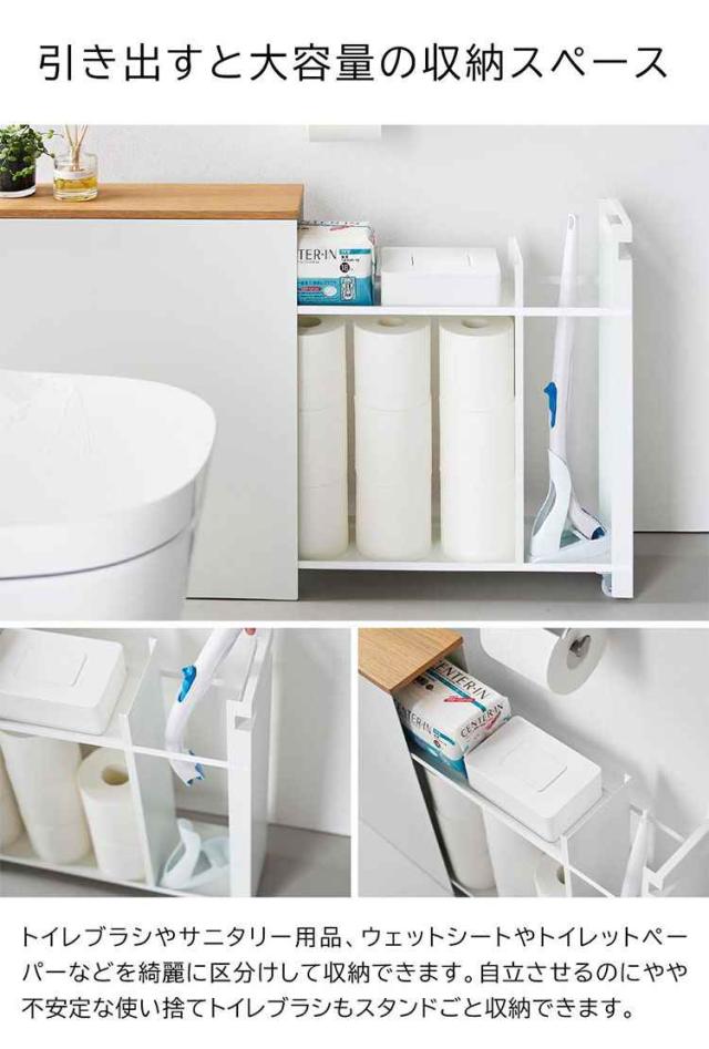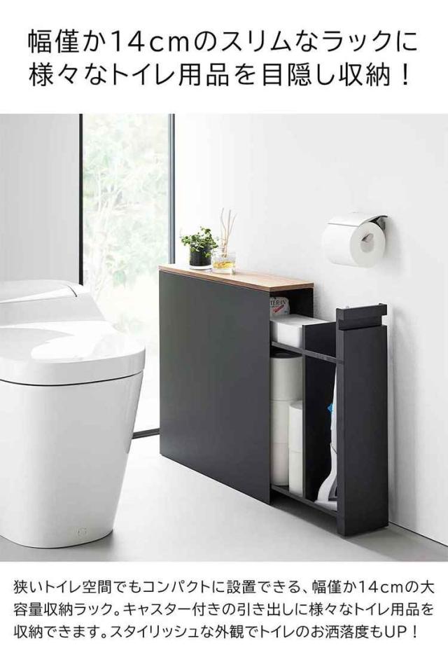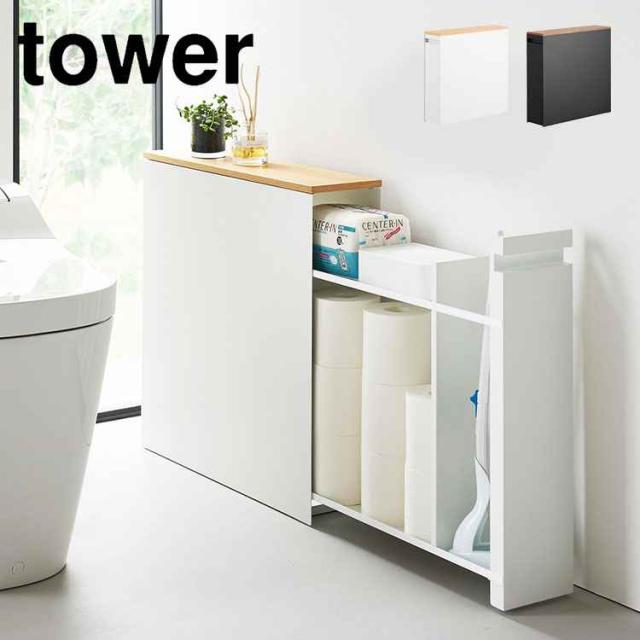 隠せるトイレ引き出し収納 山崎実業 タワー トイレラック スリム 収納 棚 隙間収納 引き出し 薄型 ストッカー 12ロール 収納ボックス tower 掃除道具 入れ 省スペース ホワイト ブラック 1426 1427 おしゃれ スタイリッシュ シンプル 幅14cm 飾り棚 トイレ用品