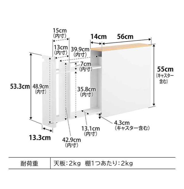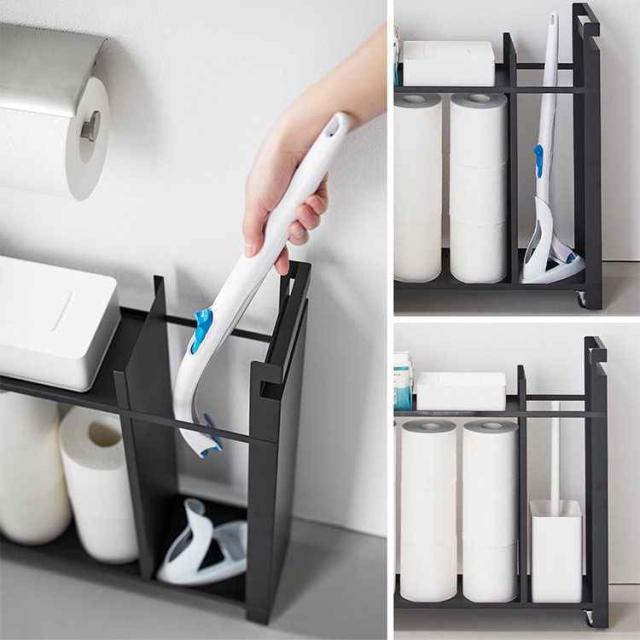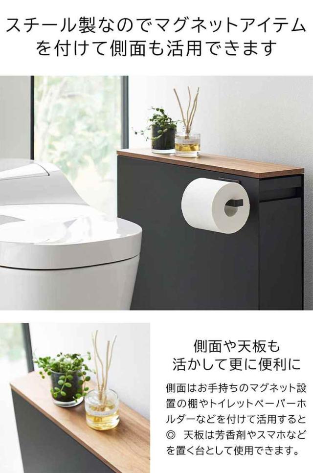 スリムで大容量の引き出し式トイレ収納ラック。サニタリー用品やウェットティッシュ、長いトイレブラシも収納可能。幅14cm高さ55cmのスリム設計なので、手洗いカウンターの下や狭いトイレにも設置可能です。スチール製なので側面にマグネット商品を取り付けて収納を増やすことができます。