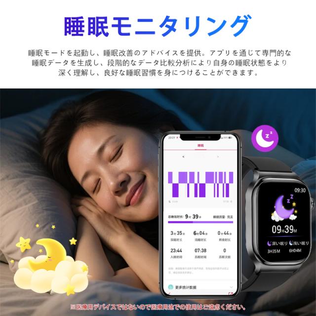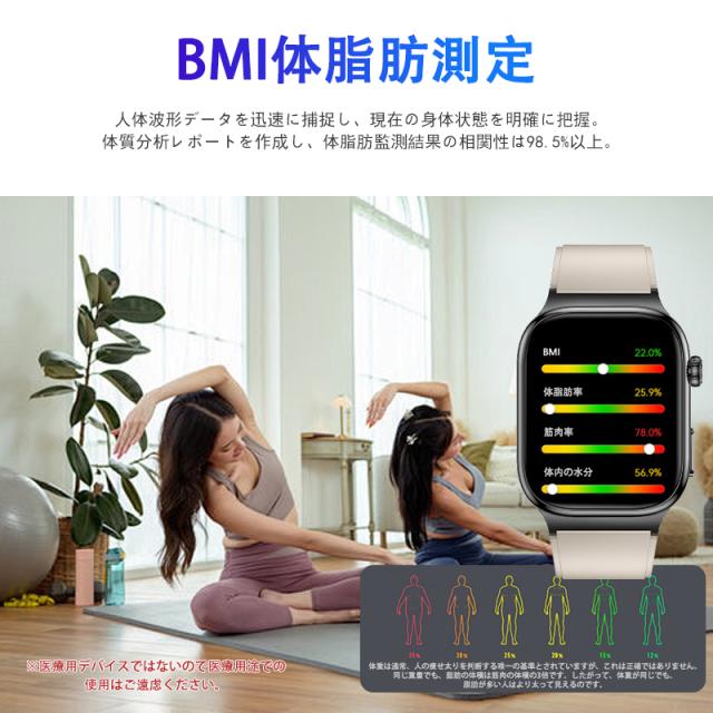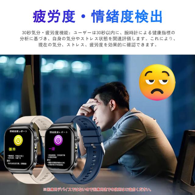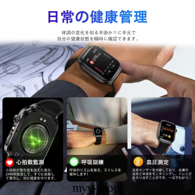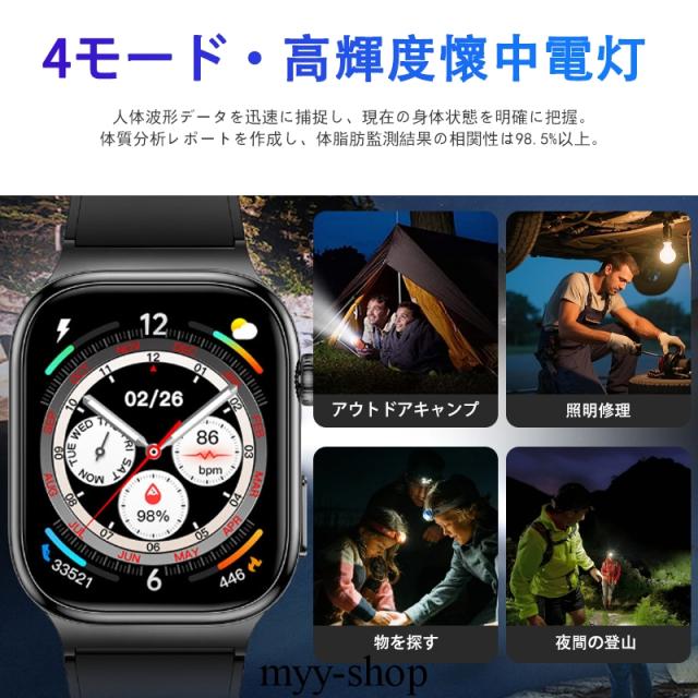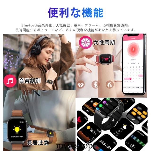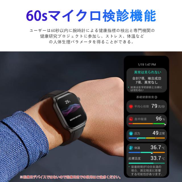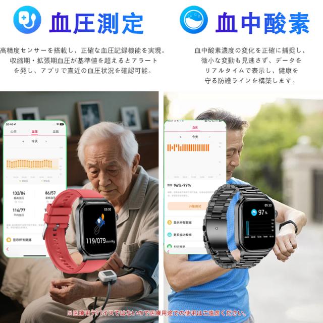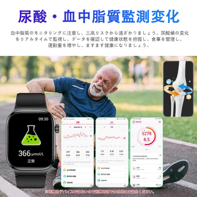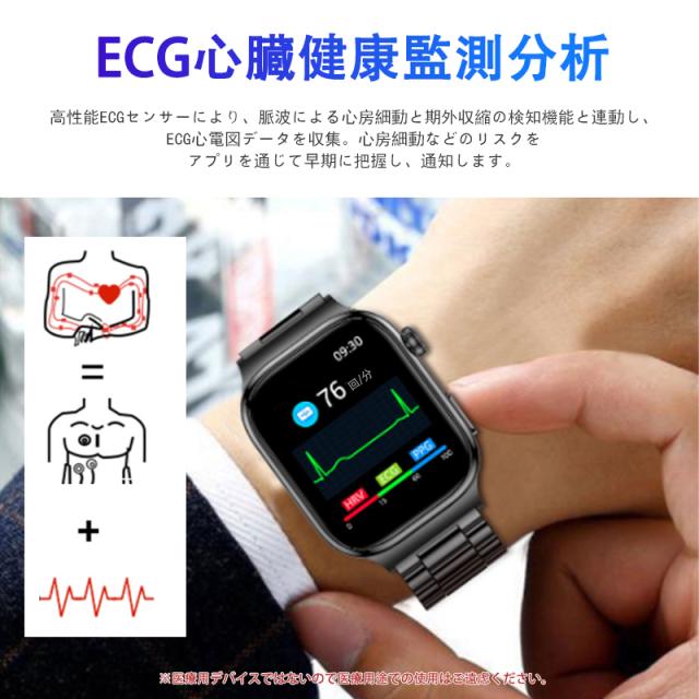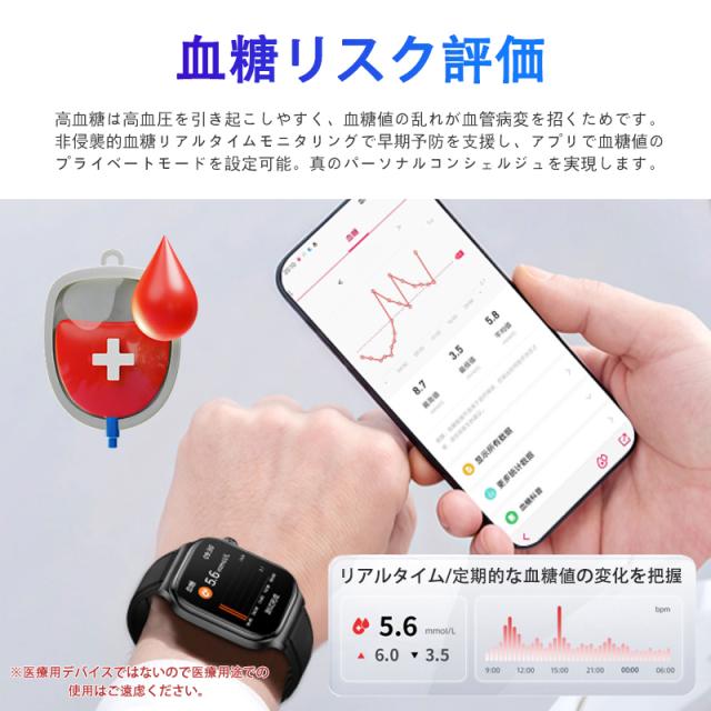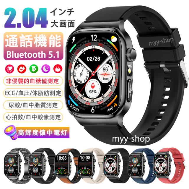 スマートウォッチ 五臓健康管理 血糖値 血圧測定 血中酸素 尿酸 血中脂質 心拍数 BMI ECG心電図 睡眠監視 体温検知 呼吸訓練 女性生理管理 懐中電灯 多運動モード 文字盤自由設定 通話機能付き 着信&メッセージ通知 iphone Android対応 日本語説明書付き