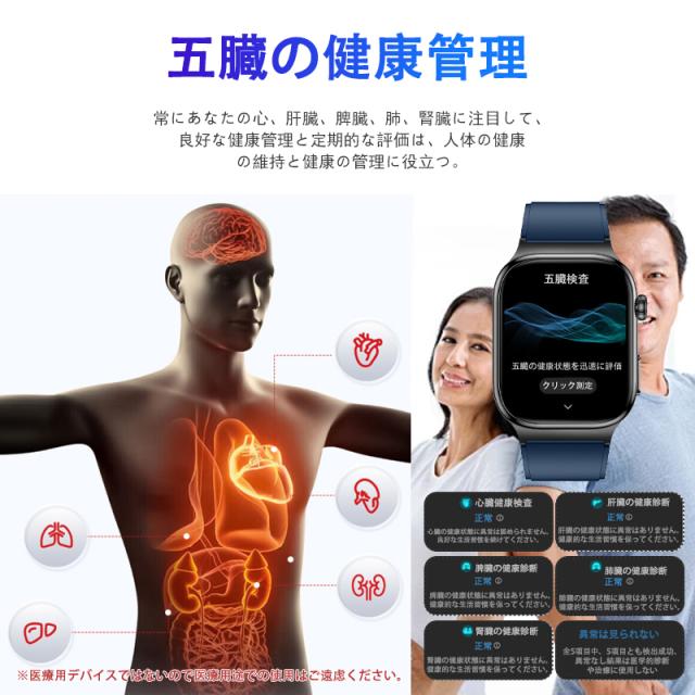 スマートウォッチ 五臓健康管理 血糖値 血圧測定 血中酸素 尿酸 血中脂質 心拍数 BMI ECG心電図 睡眠監視 体温検知 ストレス監視 呼吸訓練 女性生理管理 懐中電灯 リモートケア 天気予報 多運動モード 文字盤自由設定 通話機能付き 着信&メッセージ通知 iphone Android対応 活動量計 IP68防水 腕上げ点灯 遠隔カメラ SOS緊急連絡 目覚まし時計 音楽コントロール 座り過ぎ通知 AI音声アシスタント トーチ タイマー 長持ちバッテリー 磁気吸引充電 日本語説明書付き スポーツウォッチ 腕時計 メンズ/レディース プレゼント 贅沢ギフト 父の日 母の日 敬老の日 誕生日 夏祭り