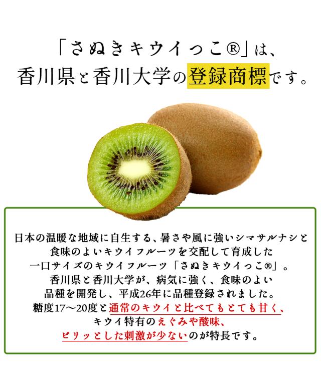 シマサツナシと、食味の良いキウイフルーツを交配した香川県で開発されたさぬきキウイっこは、一口サイズで食べやすく、しっかりとした甘みが特徴!