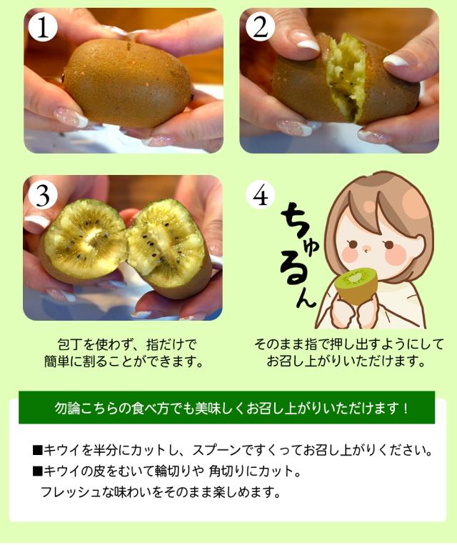 ■キウイは包丁で切ると酸味が強くなってしまいます。さぬきキウイっ子は指で割って食べれるので独特なえぐみがありません。