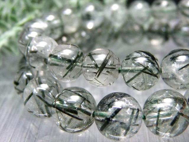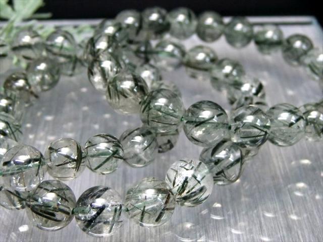 はっきりとした針状結晶 2A+ グリーンルチルクォーツ グリーントルマリンインクォーツ/アクチノライトインクォーツ ブレスレット 8mm-8.5mm×23珠前後 透明感抜群 ブラジル産 パワーストーン 天然石