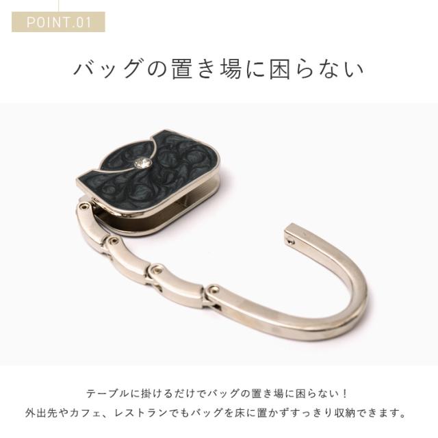 外出先のテーブルに掛けるだけで、バッグを床置きせず衛生的にキープできます。