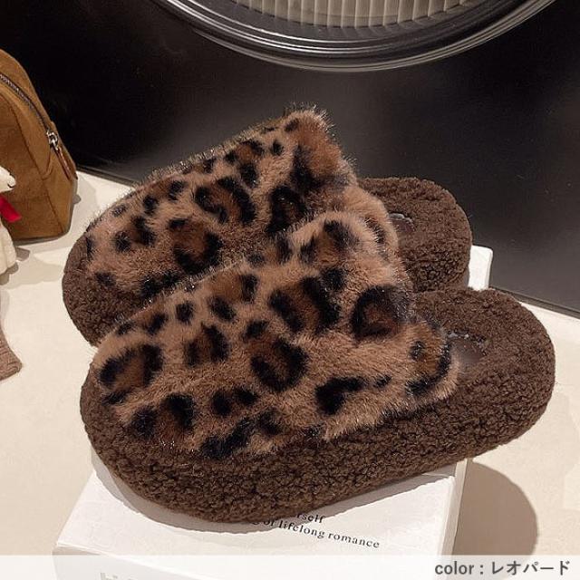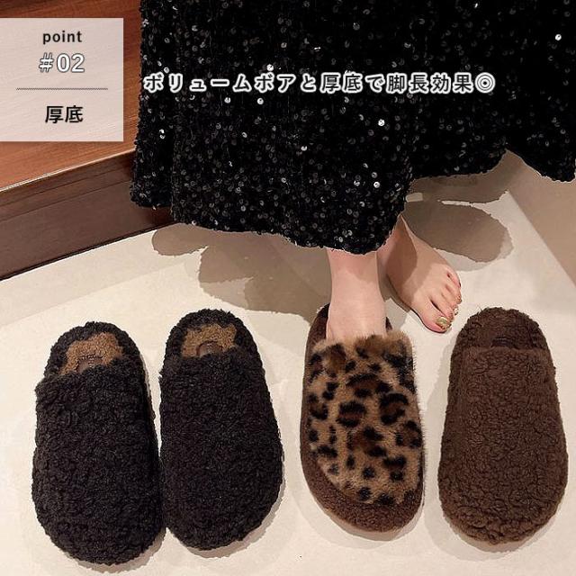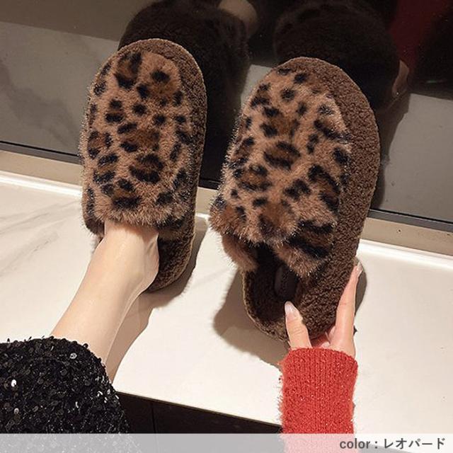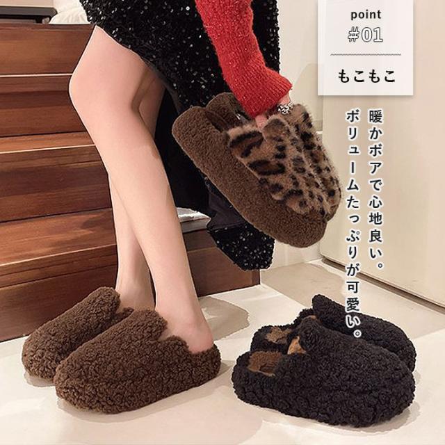 秋新作 靴 レディース シューズ サンダル ボアサンダル 秋 冬 黒 おしゃれ 厚底 外履き用 レオパード あったか 保温 もこもこ かわいい^bo-964^