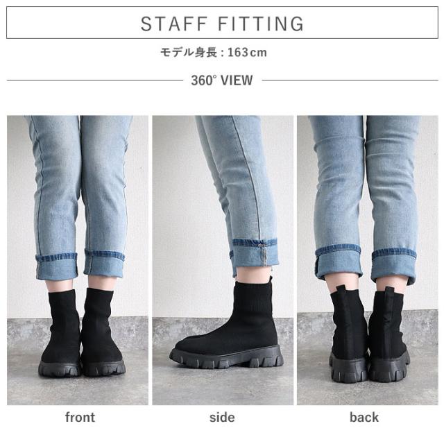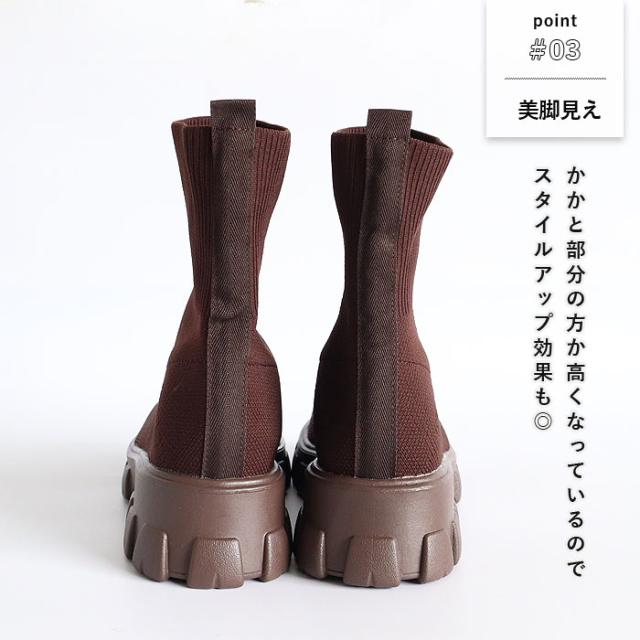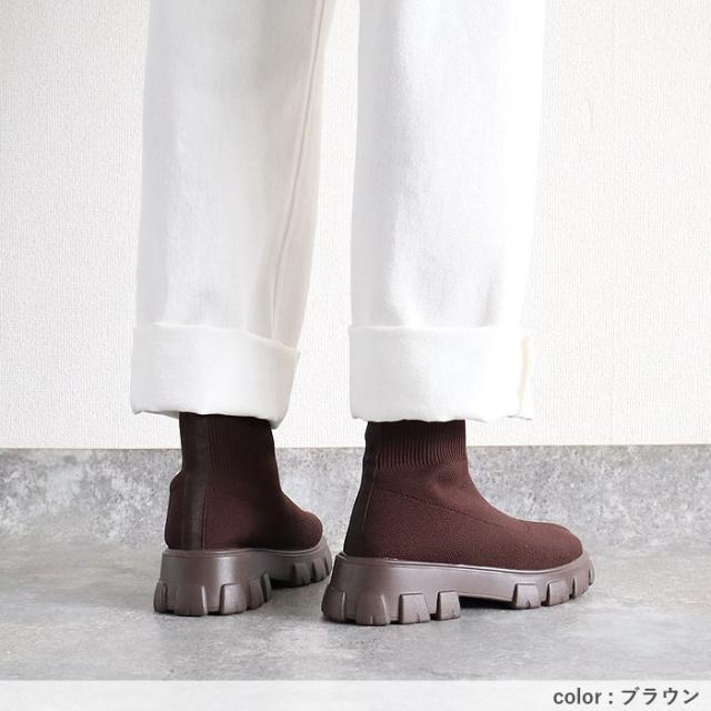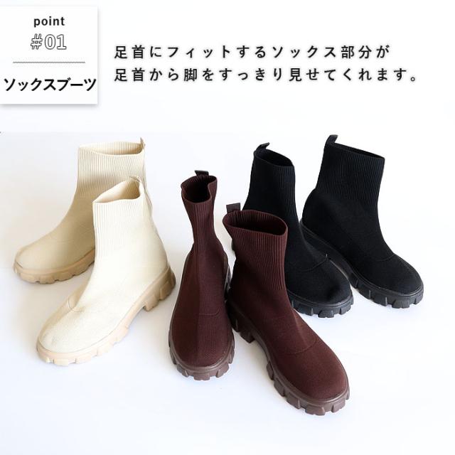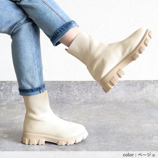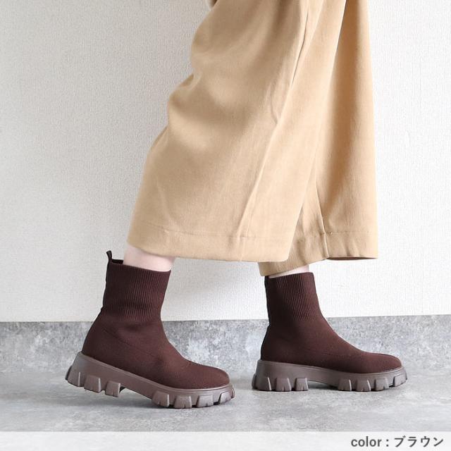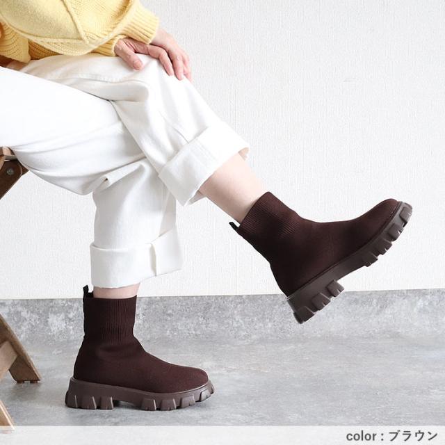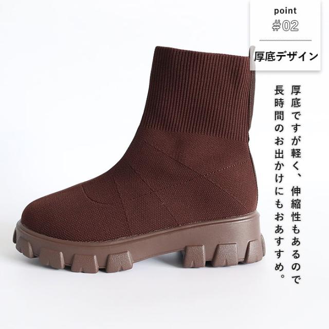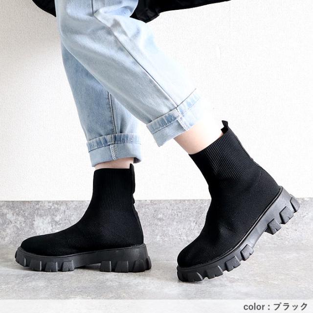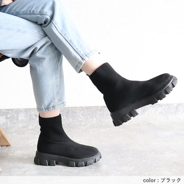 靴 レディース シューズ ソックスブーツ 秋 冬 黒 白 おしゃれ 厚底 フライニット ショートブーツ スリッポン 脱ぎ履き簡単 40代 0代 50代 60代 大きいサイズ 大人 カジュアル かわいい きれいめ SALE セール uricca ウリッカ うりっか
