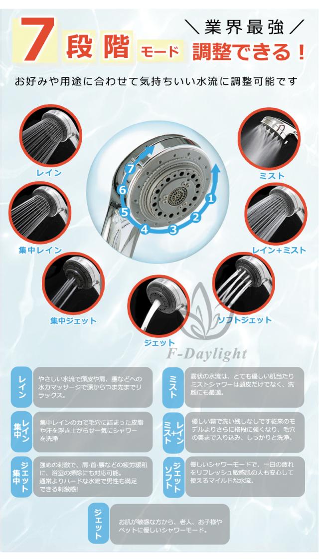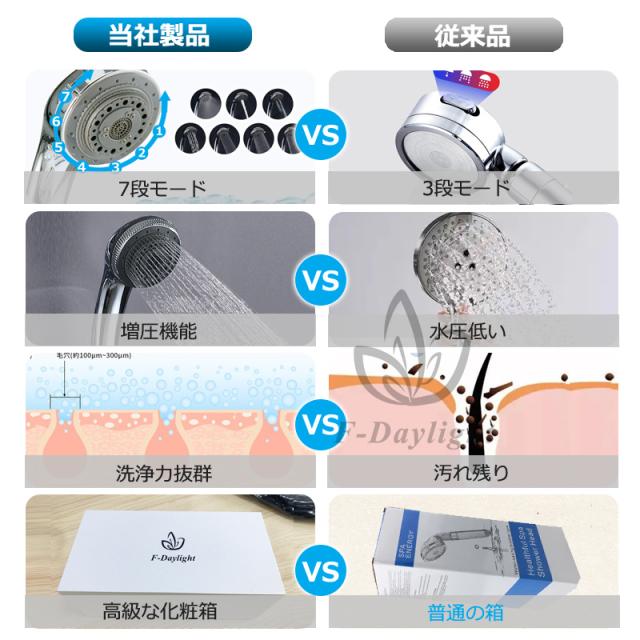F-Daylight正規品 シャワーヘッド マイクロナノバブル シャワーヘッド 7段モード 超微細泡 増圧 保湿 節水 極細水流耐久性 軽量 ナノバブル 水圧強い 母の日