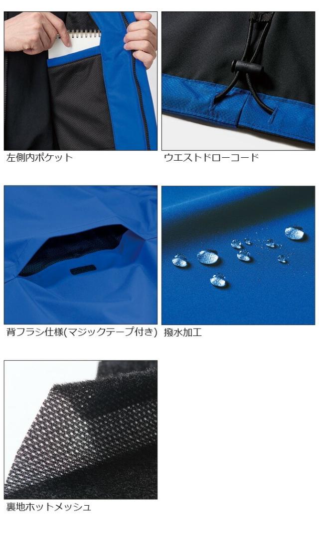 マイクロソフトシェル 表地:強撥水加工、防風ラミネート加工、耐水性10,000mm 裏地:ホットメッシュ(保温性) 混率:ポリエステル100% |