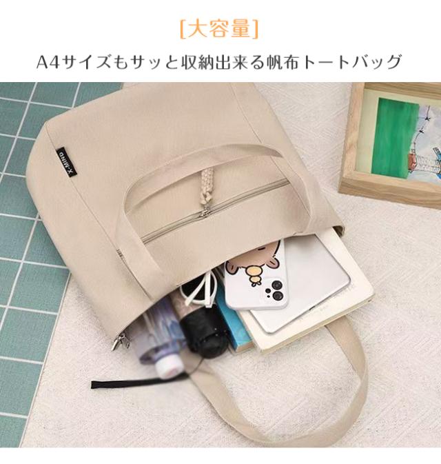 冬新作 キャンバス トートバッグ レディース 肩掛けバッグ バッグ チャック付き 3ポケット 手提げかばん トートバッグ 自立 A4 大容量 無地 通勤 通学 オフィス かわいい おしゃれ カジュアル 秋冬 ポイント消化