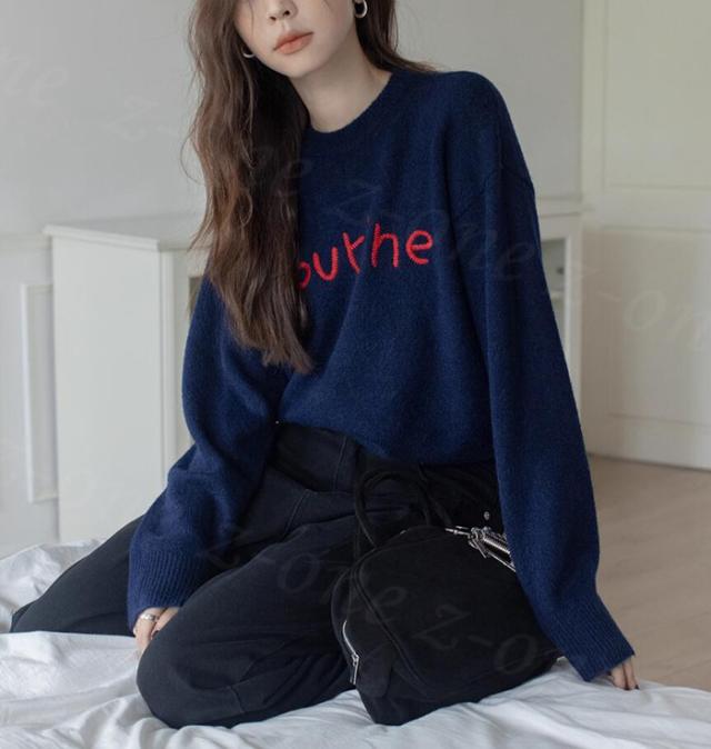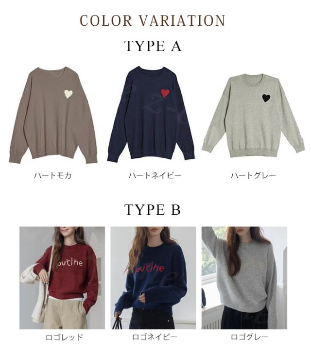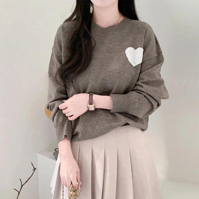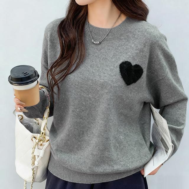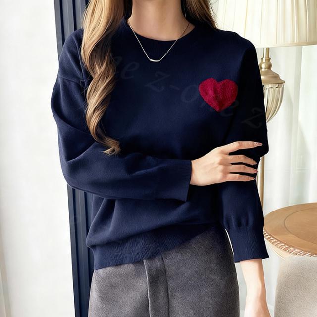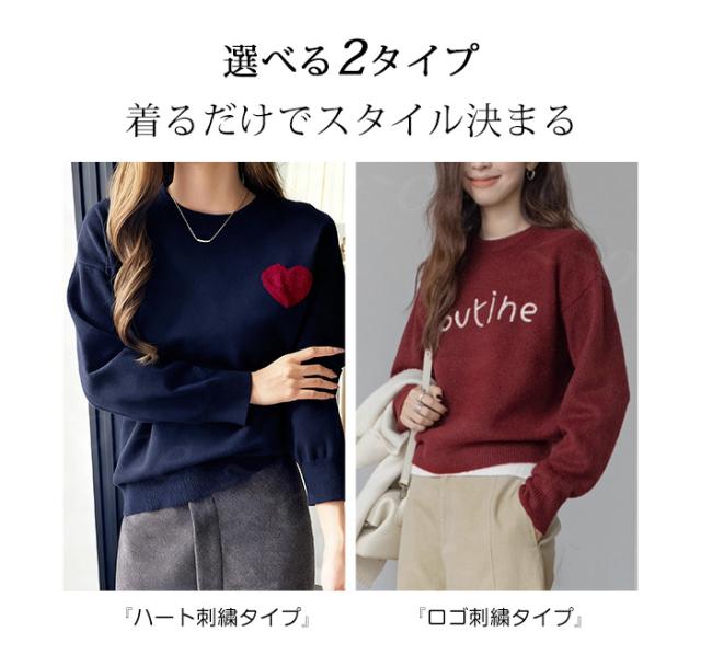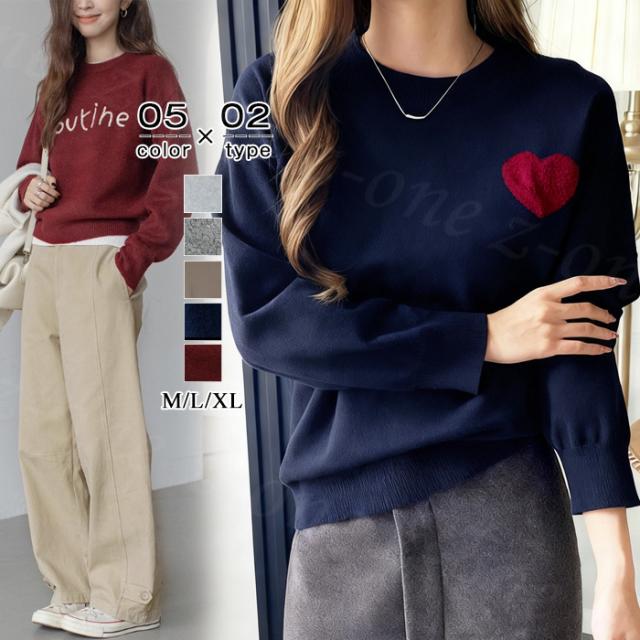 【1点3,550円!クーポン利用で】ニット セーター ハートニット プルオーバー 冬新作 新作 ラウンドネック 刺繍 長袖 トップス ニットトップス トップス レディース 柔らかい 大人可愛しい ジュアル おしゃれ きれいめ カジュアル 着痩せ 無地 送料無料 春 秋 冬
