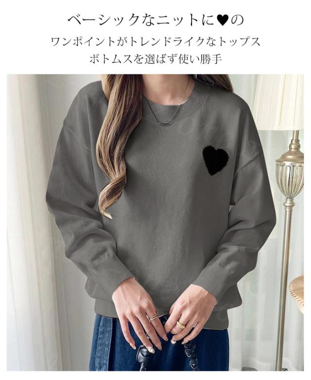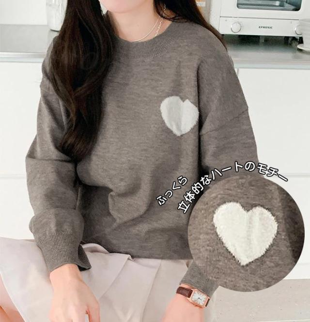 ・胸元のハートモチーフが目を惹くニットプルオーバー