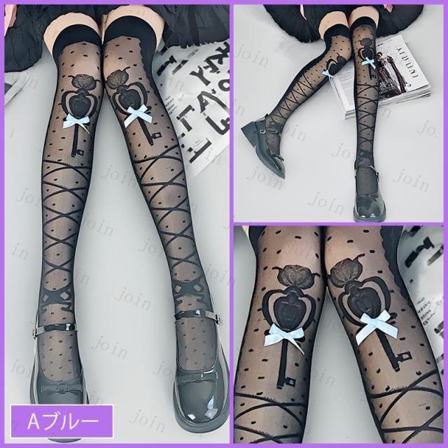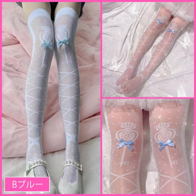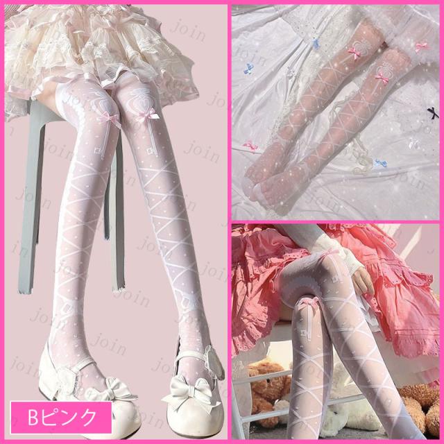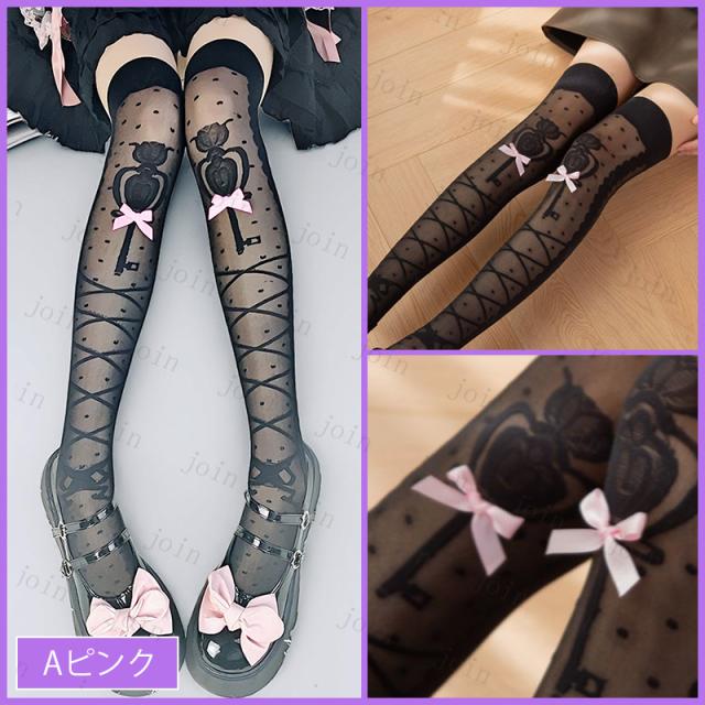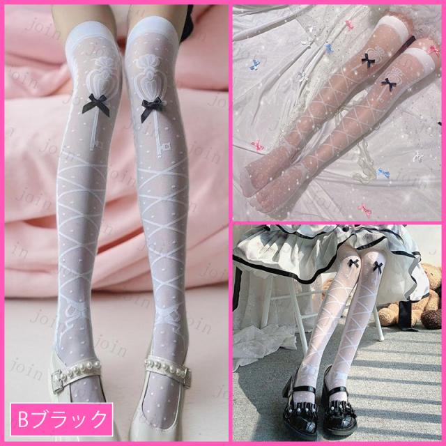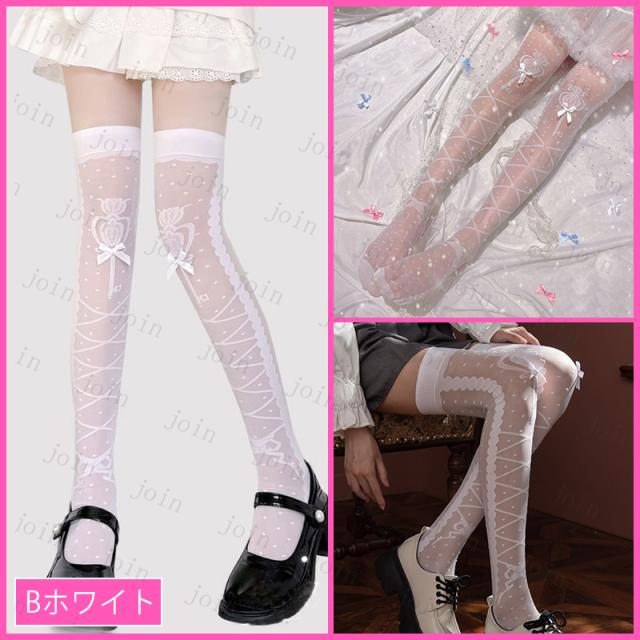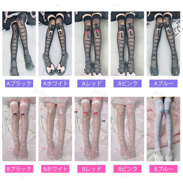 ニーハイストッキング (st76#) 当日発送 2type 5color ストッキング レディース 膝上 リボン レース ロリータ ゴスロリ オーバーニーストッキング インナー 下着