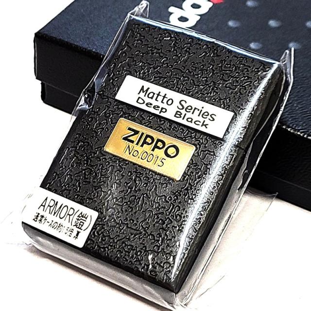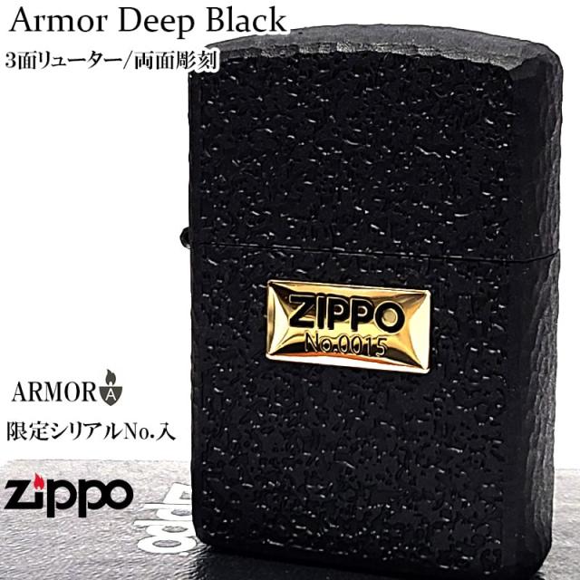 ZIPPO ライター アーマー 限定 ディープブラック ジッポ ロゴ 艶消し 黒 両面加工 シリアルナンバー入り 3面リューター加工 彫刻 ゴールドメタル マット仕上げ おしゃれ 重厚 メンズ 高級 かっこいい クリスマス プレゼント ギフト