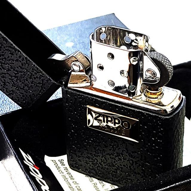 クラシックなブラッククラックルの本体にメタルが輝くおしゃれなZIPPOライターです。