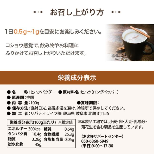 ヒハツパウダー 100g ロングペッパー スパイス 冷え対策 温活 ひはつ パウダー ピペリン ヒハツ粉末 LibertyLife (リバティライフ)