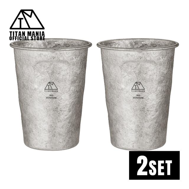TITAN MANIA チタンマニア チタンカップ チタン製 380ml 軽量 頑丈 ビアグラス カップ コップ サビない 割れない スタッキング可 結晶模様 アウトドア キャンプ ソロキャンプ アウトドア用品 キャンプ用品 収納袋付き (2個セット)