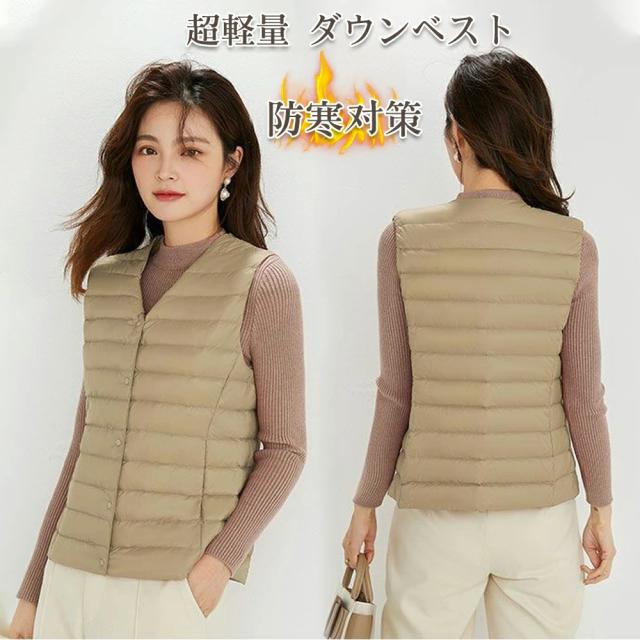 - 薄くて軽いダウンベストが欲しくて購入しました。 家の中で肌寒い時に羽織ったり、外出時のインナーベストにぴったりです。 1番大きいサイズにしたので、余裕があります。べジューの色も気に入りました。 着用後...