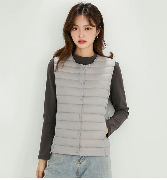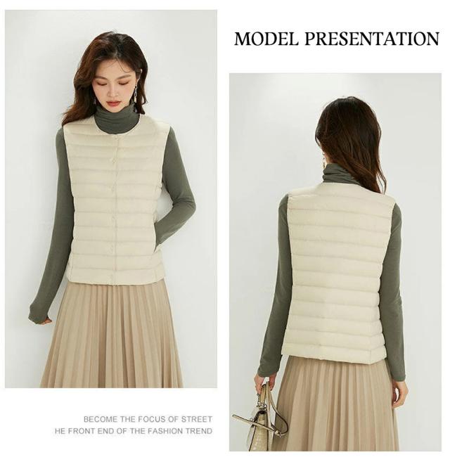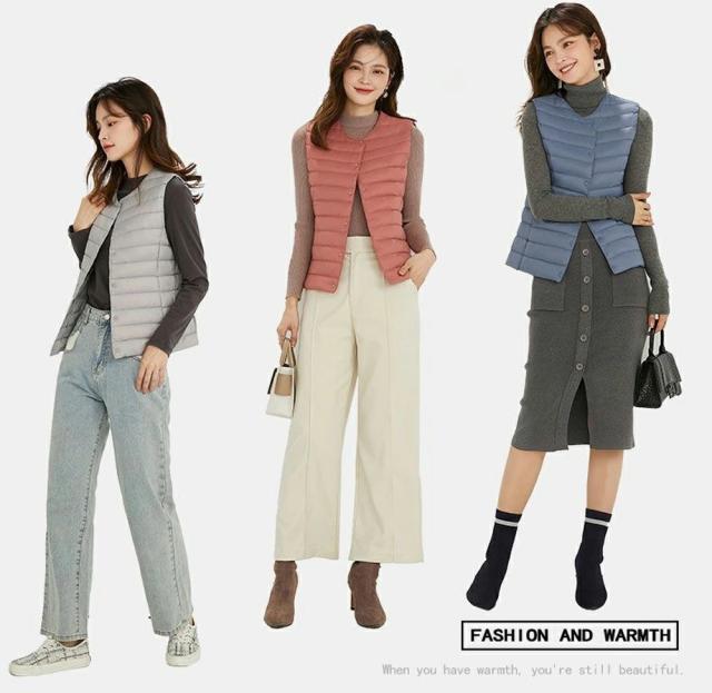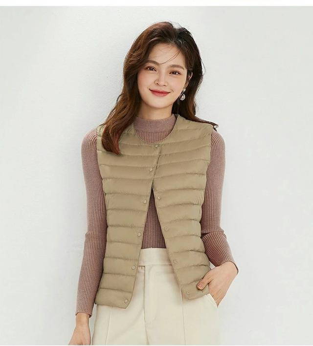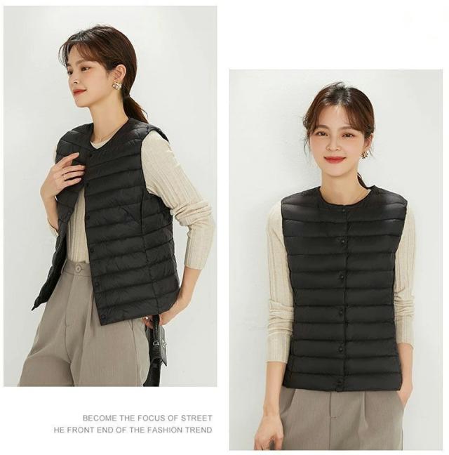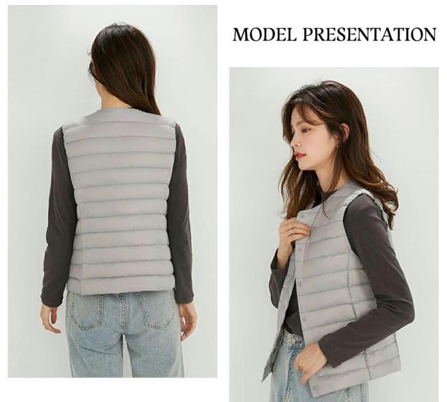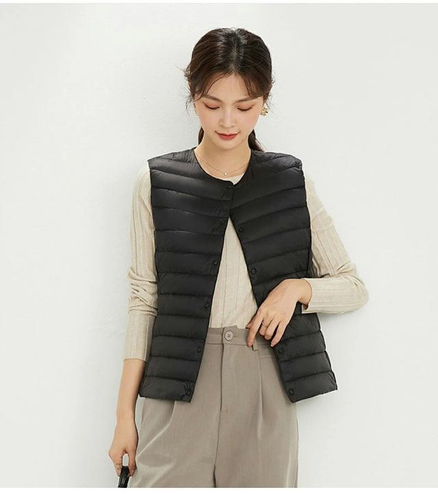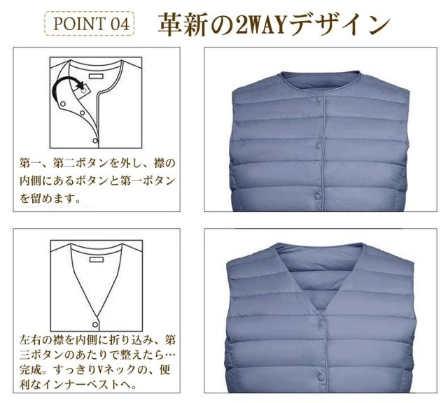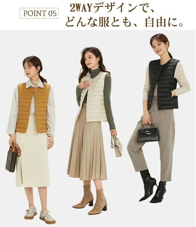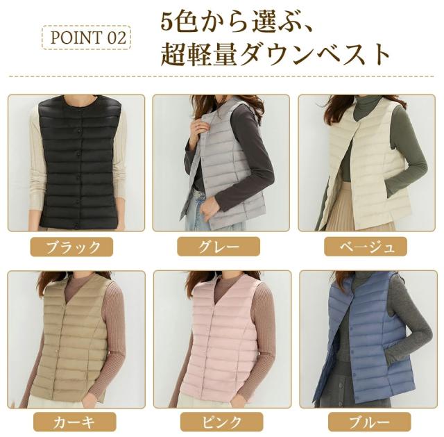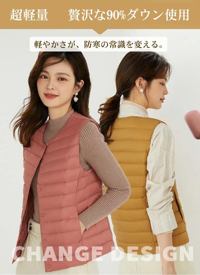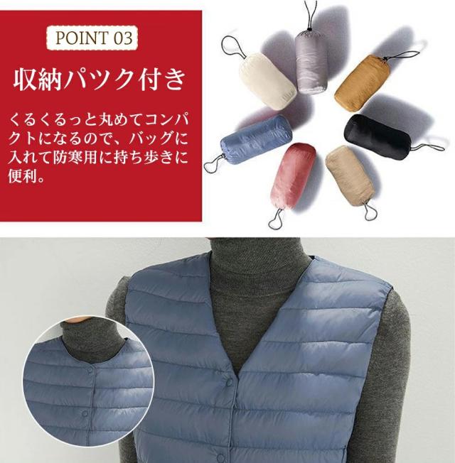 ダウンベスト キルティングベスト レディース ライトダウンベスト ライトダウン ノーカラー インナーダウン アウター 軽い 暖か あたたかい 防寒 薄い 無地 シンプル ショート丈 収納袋 ポーチ付き コンパクト 秋 冬 春