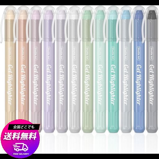 SHUTTLE ART 蛍光ペン スモーキーカラー 12色セット 固形蛍光マーカー 蛍光クレヨン 淡い色合い 速乾 裏移りしにくい 繰り出し式 ゲルインク 透明ケース付き 教科書/ノート/カレンダー/手帳…