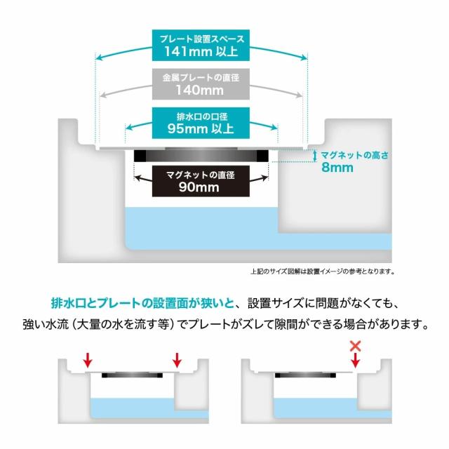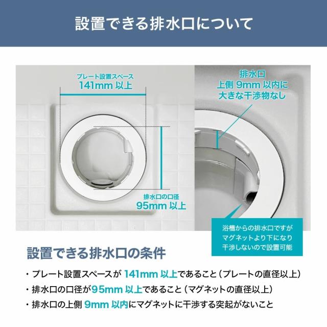 ・排水口の口径が95mm以上であること(マグネットの直径以上)