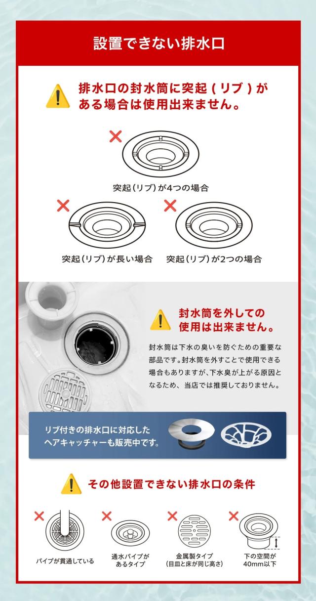 排水口(封水筒)に突起(リブ)がある場合は、本品のご使用はできません。