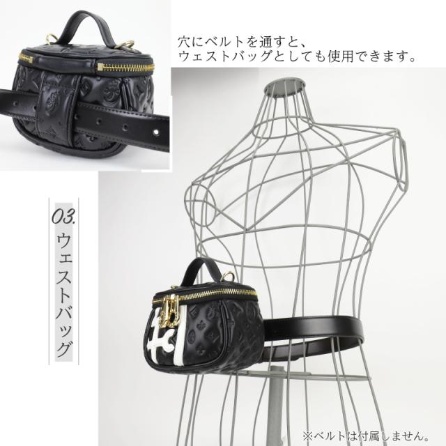 ショルダーベルトを取り外してハンドバッグに、背面にある穴にベルトを通すとウェストバッグになる3WAY仕様。