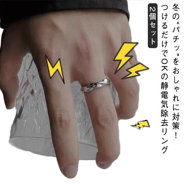 静電気対策 2個セット 静電気除去 静電気防止グッズ 静電気軽減 強力 ペアリング リング サイズ調節可能 おしゃれ ひねり ゆびわ 指輪 レディース メンズ 静電気除去 アクセサリー 送料無料 静電気 除去 静電気防止 リング