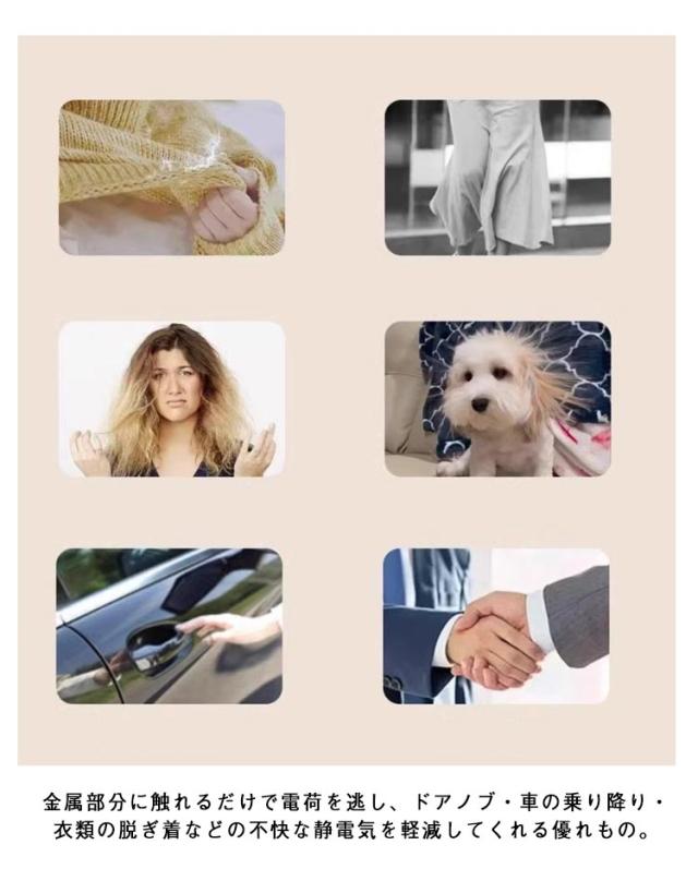 | 冬の“パチッ”をおしゃれに対策!つけるだけでOKの静電気除去リング(2個セット) 旬のひねりデザインで、ファッションも静電気対策もこれ1つ。 金属部分に触れるだけで電荷を逃し、ドアノブ・車の乗り降り・衣類の脱ぎ着などの不快な静電気を軽減してくれる優れもの。 リングはサイズ調節が可能なので、どんな指にもフィット。 軽くてつけ心地も良く、日常使いにぴったり! おしゃれしながら静電気をケアできる、毎日つけたくなる静電気防止リングです。 | |