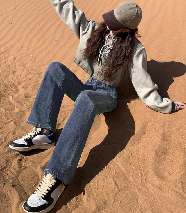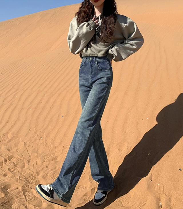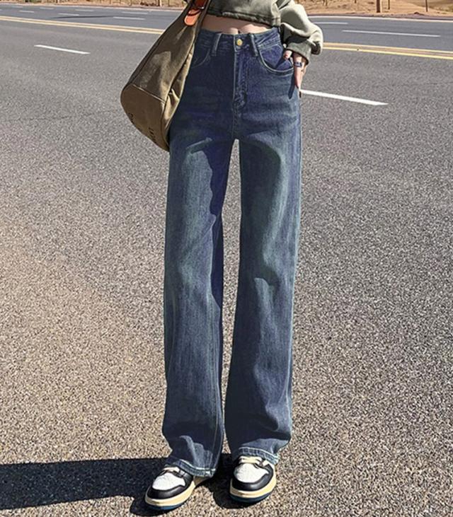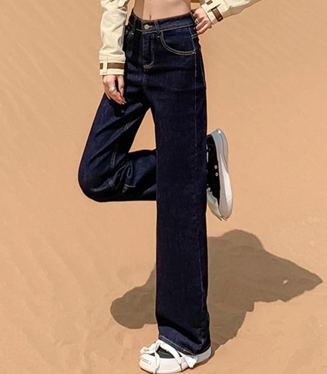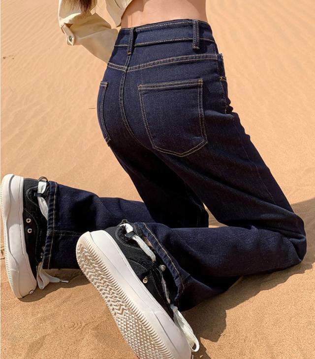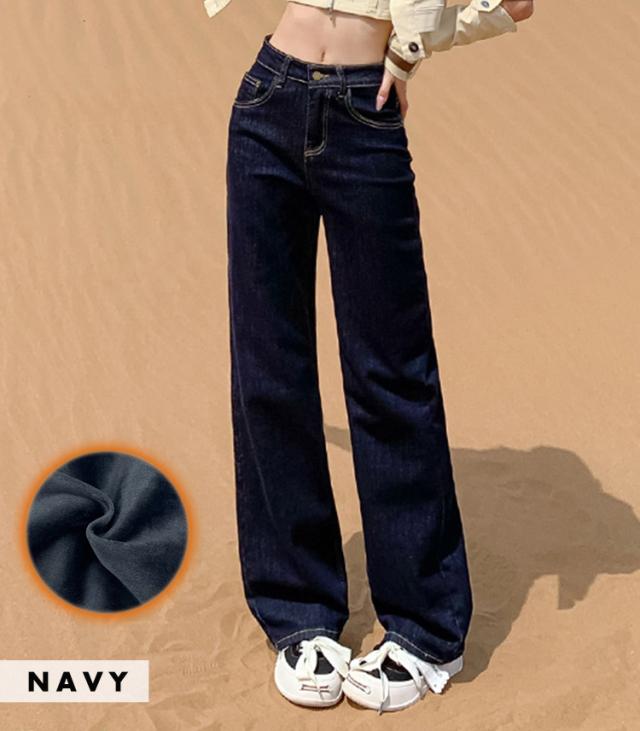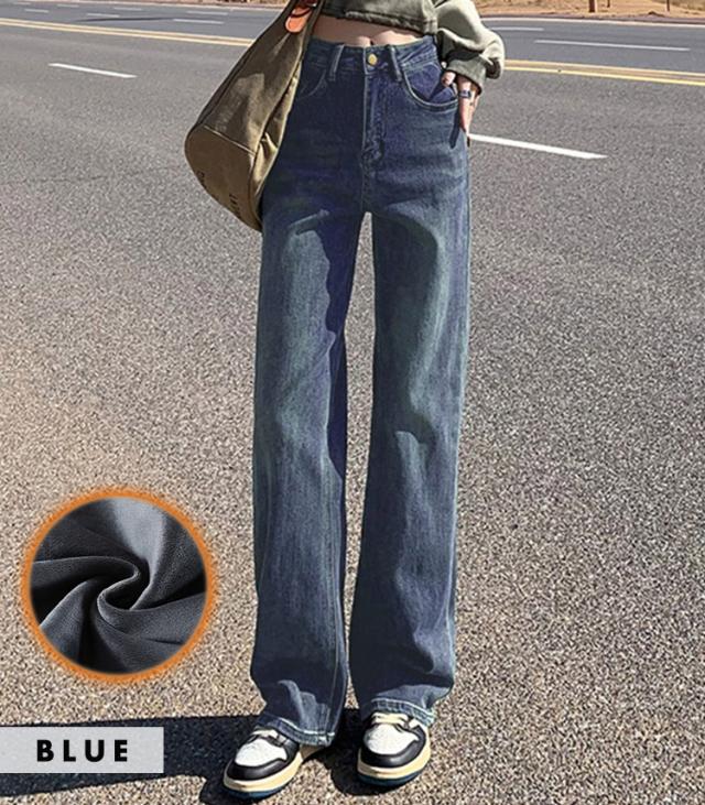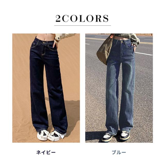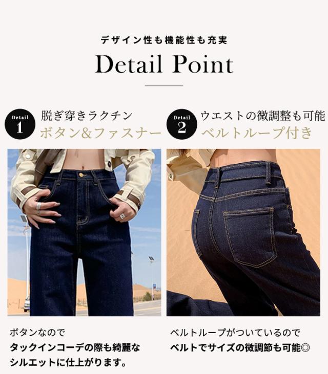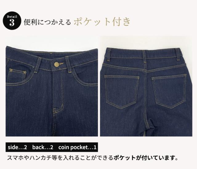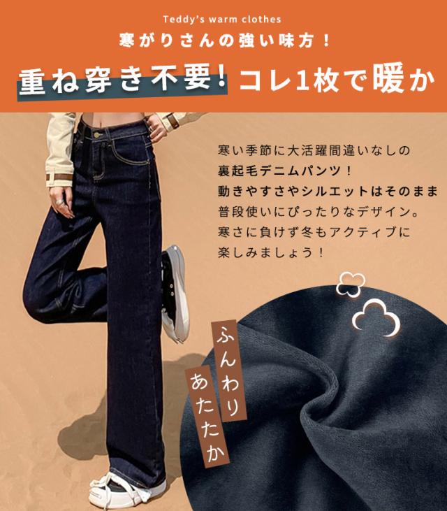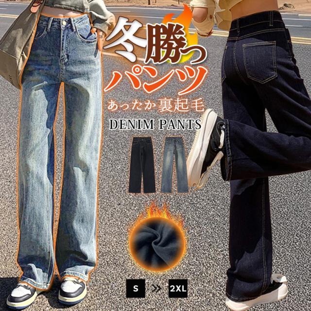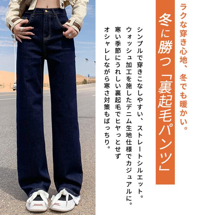 秋新作 「タイツなしでもOK!」裏起毛 デニム パンツ ストレート レディース ボトムス 防寒 保温 暖かい 暖パン 美脚 ジーンズ ストレートパンツ ロング丈 きれいめ ウォッシュ加工 ボタン ファスナー ポケット ベルトループ 伸縮性 無地 厚手 秋 冬