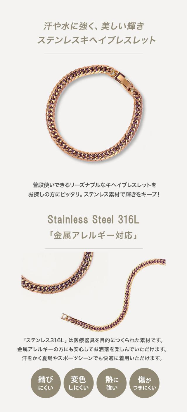 喜平 ブレスレット K18 カラー ステンレス 6面 6面ダブル 20cm キヘイブレスレット サージカルステンレス 316L 18金 ダブル キヘイ メンズ ジュエリー アクセサリー レディース 男女兼用 金属アレルギー メンズブレスレット クリスマス プレゼント 男性 女性 誕生日 ギフト