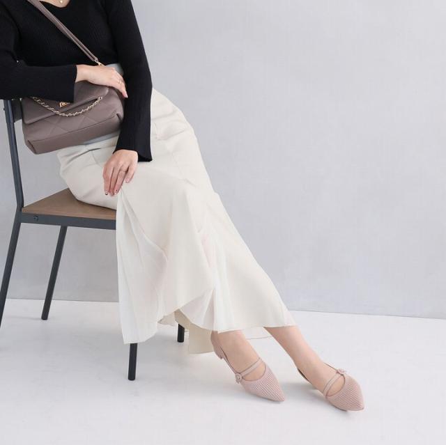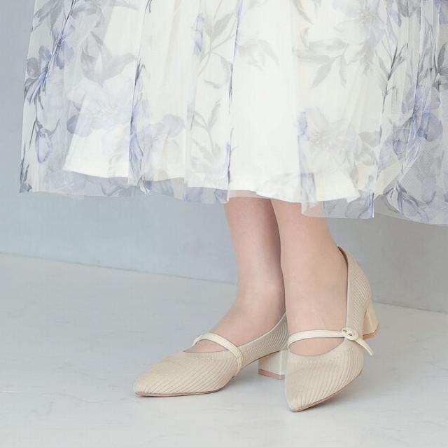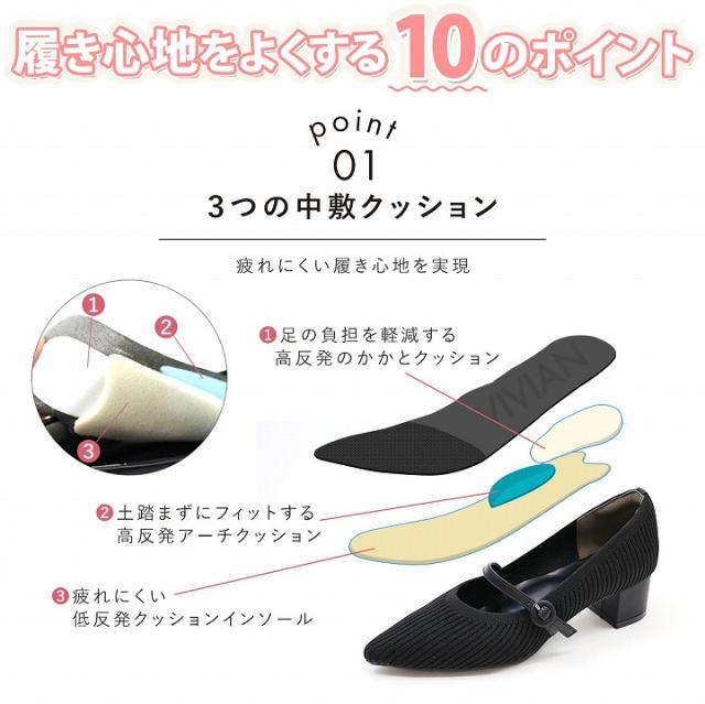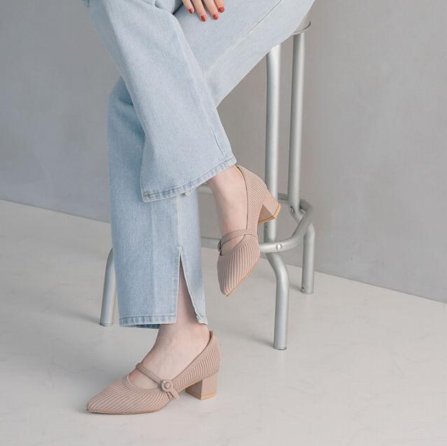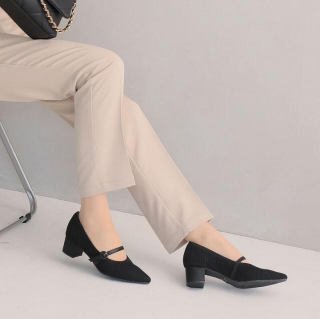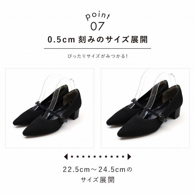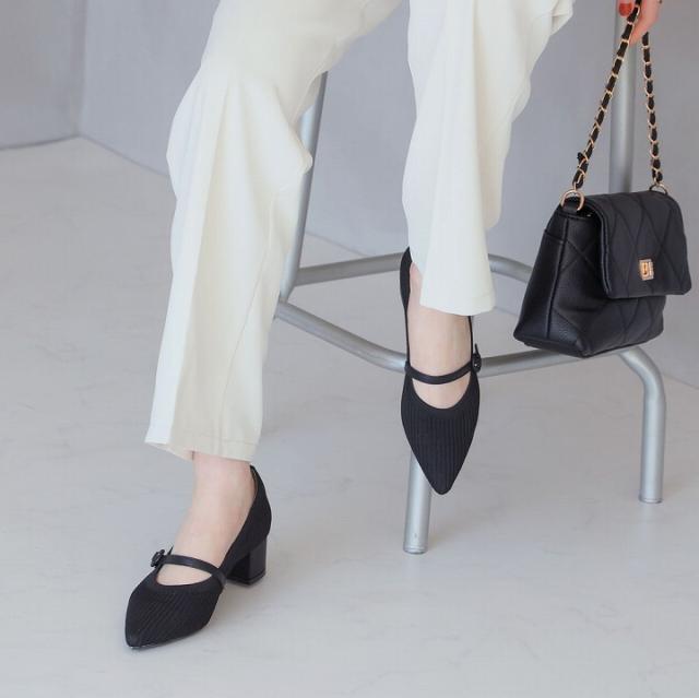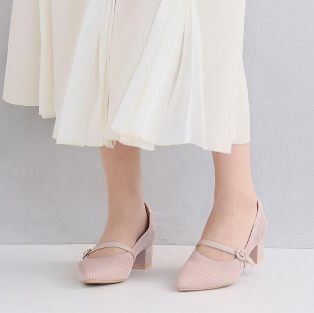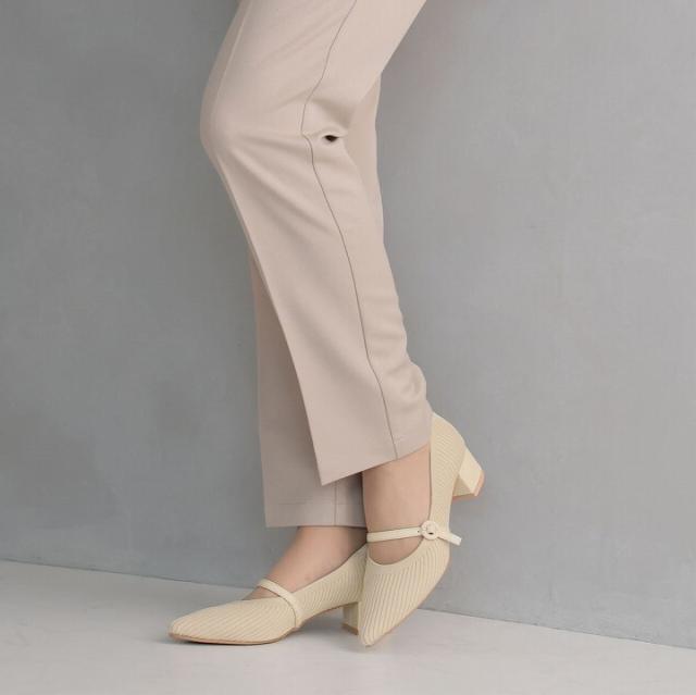 ポインテッドトゥメリージェーン4cmヒール感激ニットパンプス
