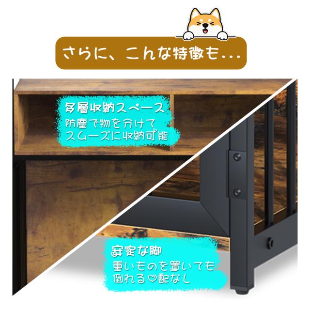 【おしゃれなデザイン&お部屋に馴染む】上質なメタルデザインと温かみのある木目調がインテリに調和。ご家族とワンちゃんの暮らしに合わせて作られた犬小屋です。犬に窮屈な思いをさせる事なく、落ち着いてリラックスできる空間です。