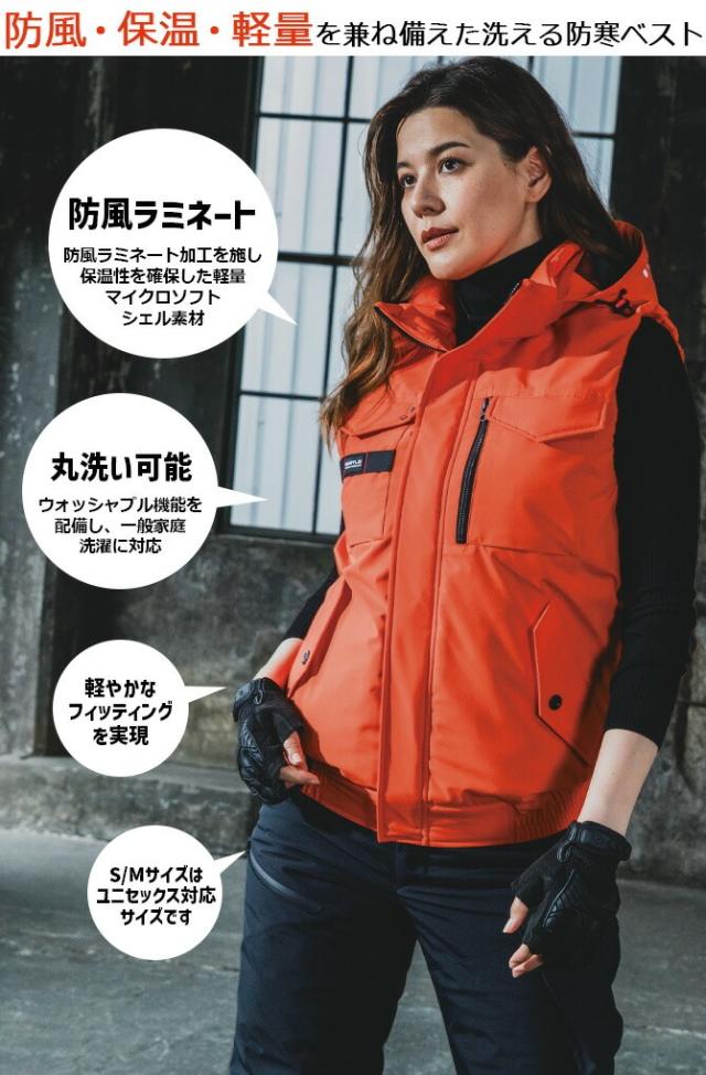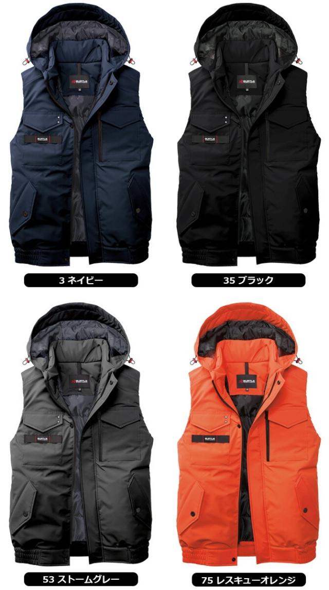 BURTLE(バートル)の2025年秋冬新作の中綿入りの防寒ベストです。