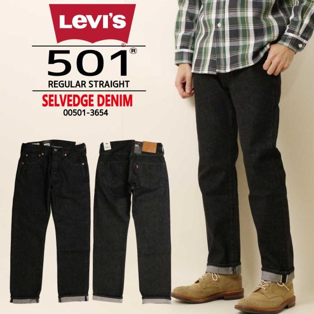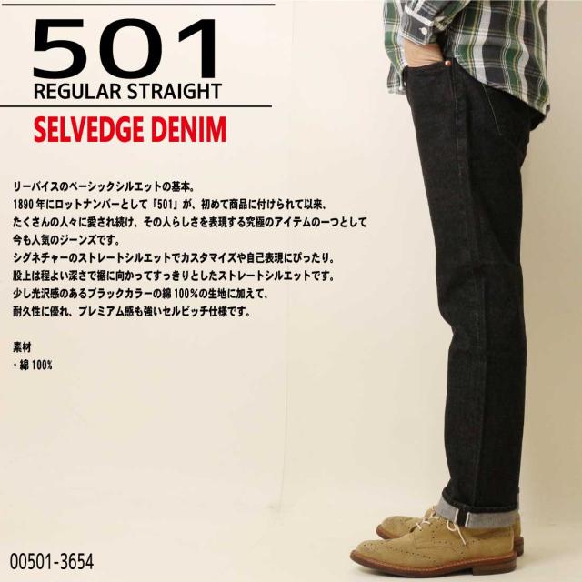 Levi’s リーバイス 501 ジーンズ ボタンフライ レギュラーストレート オリジナル 00501 3654 セルビッジ 赤耳 ブラックデニム 綿100% デニム メンズ LEVI’S