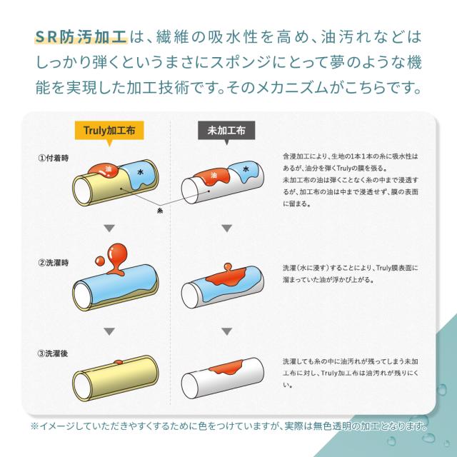 Truly防汚加工により、スポンジ自体の汚れも落とします。