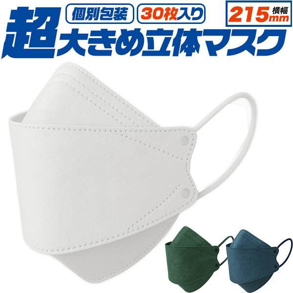 マスク 30枚セット 使い捨て 個包装 ますく 超大きめ 立体マスク 横幅215mm 4層構造 カラーマスク 大人用 おしゃれ ますく 快適 通気性 呼吸がしやすい 通勤 通学 感染予防 ウイルス対策 消耗品 飛沫対策 花粉 埃 乾燥 花粉症 アレルギー 風邪予防 介護 医療施設