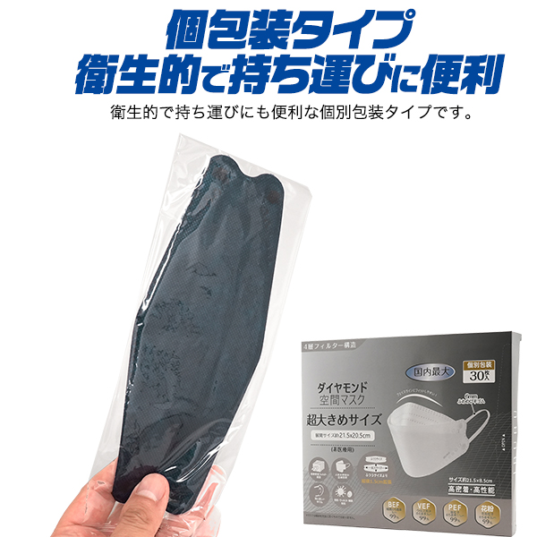 4層構造 個別包装 30枚入り 横幅215mm 超大きめマスク