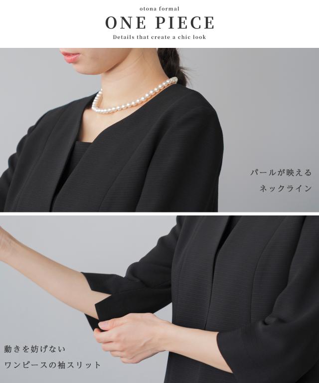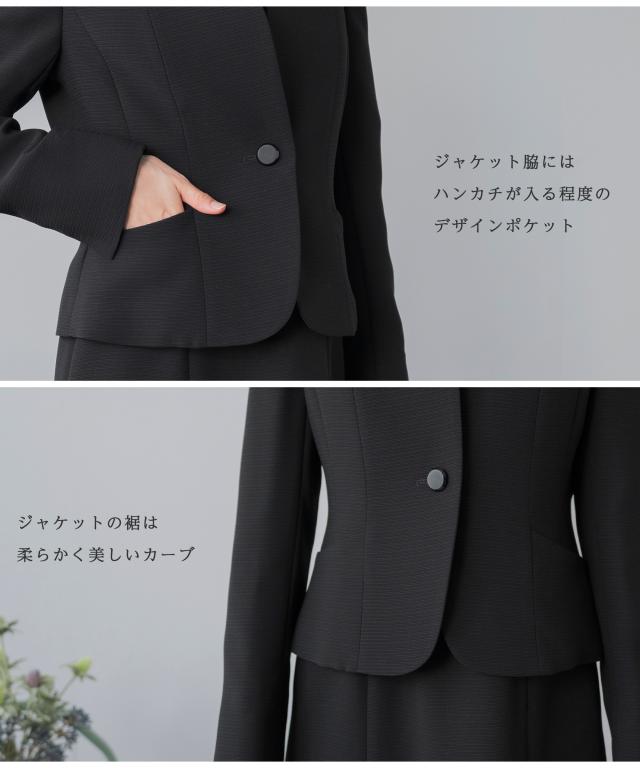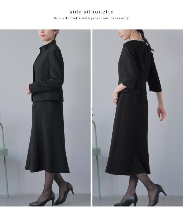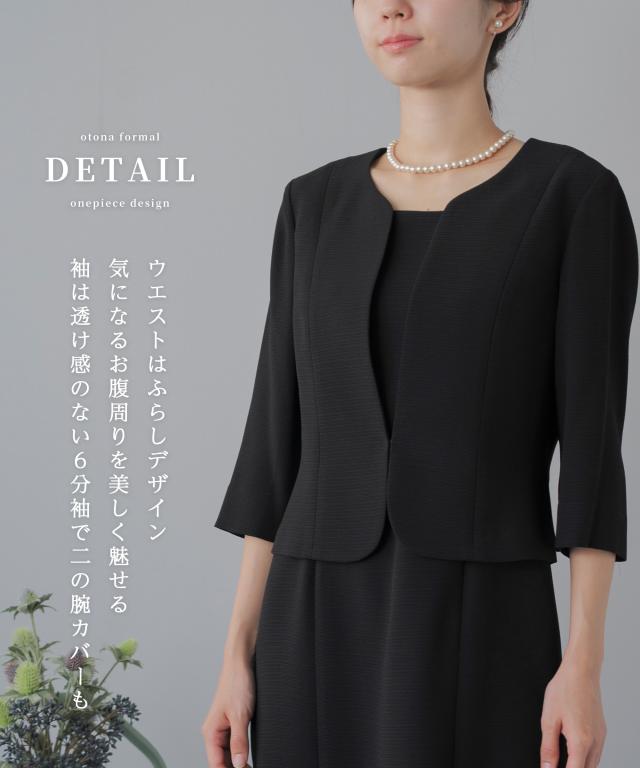 落ち着きと隠れた華やかさがちょうどいいオトナフォーマル。 グログランの高級感、今らしい丈バランス、安心のフリル襟。 オトナフォーマルの定番なのに、今らしい感覚のブラックフォーマル。 長すぎない程よいロング丈。落ち着いた印象のジャケットとワンピースバランス 構築的で立体的な型紙が来た人を美しく魅せるシルエット。 気になる首周りを美しく魅せるフリルスタンド。 襟の裏側には肌触りの良いサテン。 ほんの少しの光沢が入ることで美しさが際立ちます。 素材は高級感のあるグログラン素材。 細畝が生み出す陰影が美しく、上品な印象を与えてくれるフォーマル素材。 ご家庭で洗濯機洗い可能だから使いたい時に洗える嬉しい仕様 夏に一枚で着用できるジャケット風ワンピース。 バランスの取れた程よいロング丈。体型の気になる部分を隠してくれる工夫の詰まったワンピース。 ウエストはふらしデザイン。気になるお腹周りを隠して美しく体型カバー。 袖は透け感のない6部袖で二の腕カバーも叶えます。 手を後ろに回す必要なく、着脱が楽な前開きワンピース。 ワンピースはサマーフォーマルとしてもお使いいただけるよう、 上見頃の裏地にはサップ裏地を採用。 通気性がよくさらっとしており、夏フォーマルにもよく使われる素材。 スカート部分にはノイズレス裏地。 ポリエステル特有のカサカサ音を抑えてくれます。 【ジャケット仕様】・スタンドカラー・折り返して袖の長さを調整できるスリット入り・ジャケット脇にはハンカチが入る程度のデザインポケット。・美しいカーブの裾。 【ワンピース仕様】・ボレロジャケット風のふらしワンピース。・前開きファスナー・ワンピースの袖スリット。・フロントホックですっきりしたデザイン。・椅子に腰掛けても膝まで隠れるロング丈。 モデル 163cm / 着用サイズ 7号 キーワード:喪服 レディース 礼服 ブラックフォーマル 洗える ロング ワンピース 前開き セット オールシーズン 冠婚葬祭 40代 50代 60代 ladies 葬儀 通夜 夏 春 冬 グログラン ロングたけ丈 |